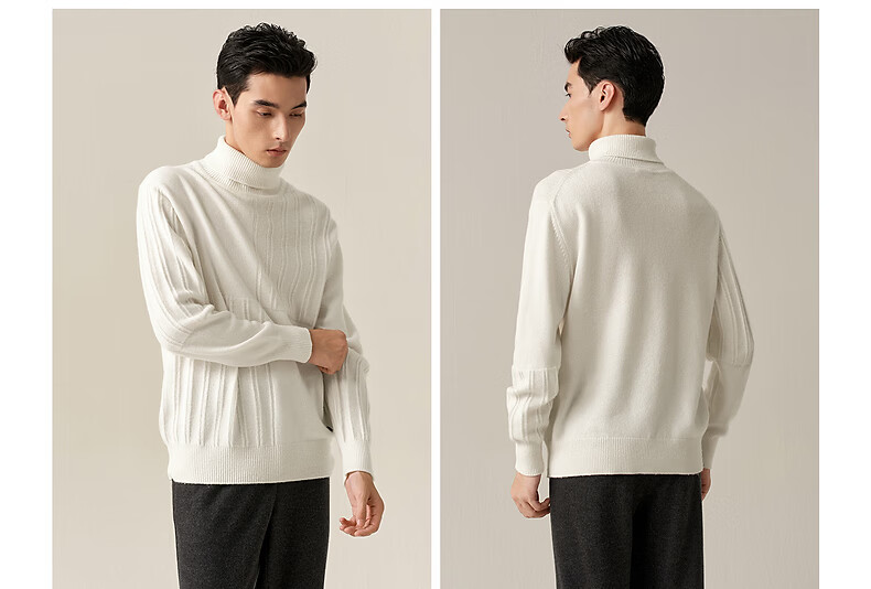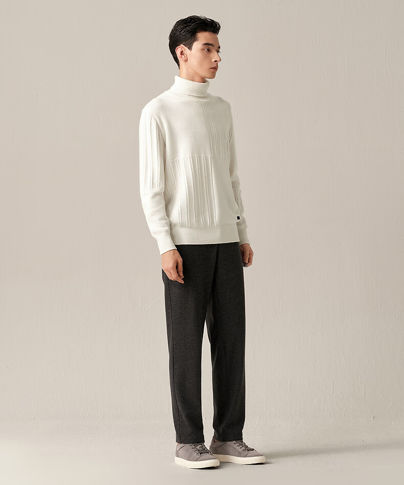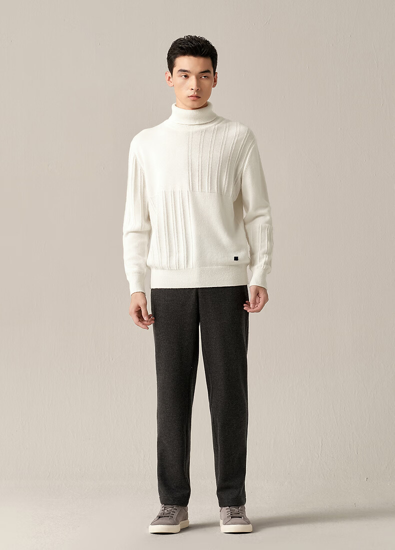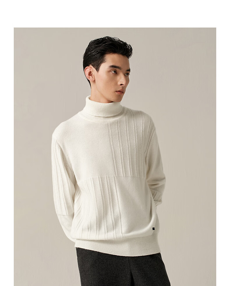 Ordos 1980 new pure cashmere bottle collar embroidered white knitted men's casual cashmere sweater 26 early spring white 2XL 185/104A