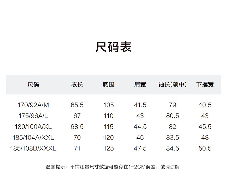 China (cm) 160-165/84-86 165-170 / 88-90 167-172 / 92-96 168-173 / 98-102 170-176 / 106-110