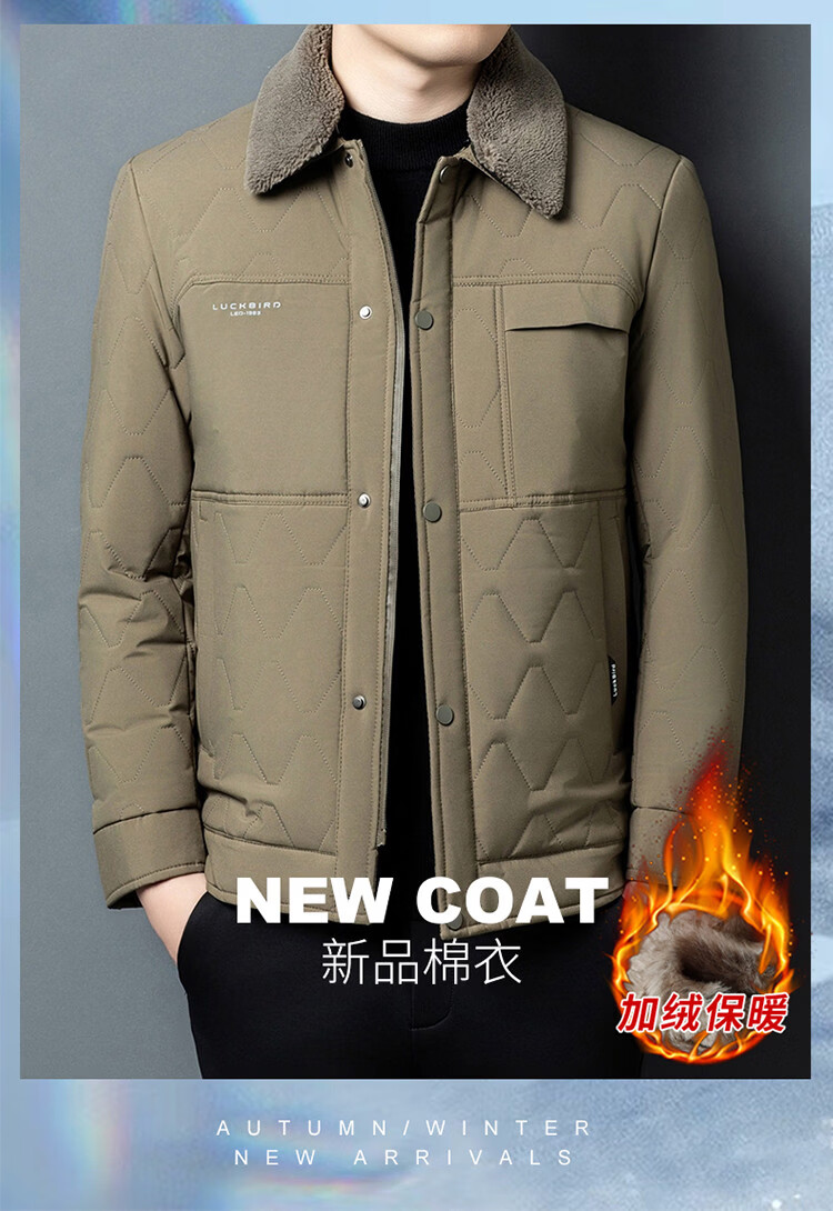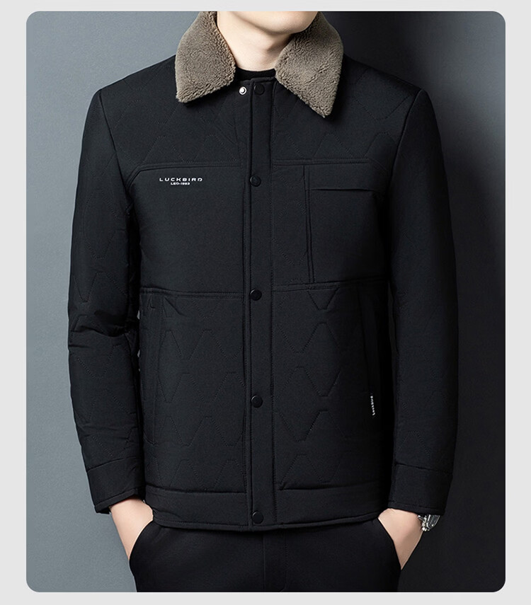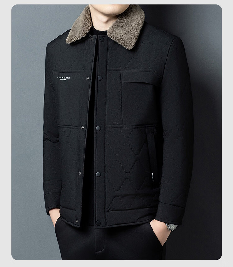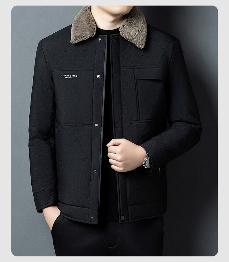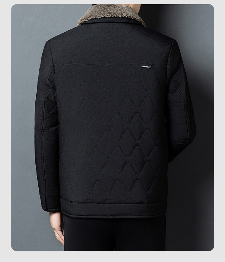 Hengyuanxiang 2026 new winter velvet thickened warm daddy cotton coat men's lapel casual cotton coat trendy jacket black 2XL
