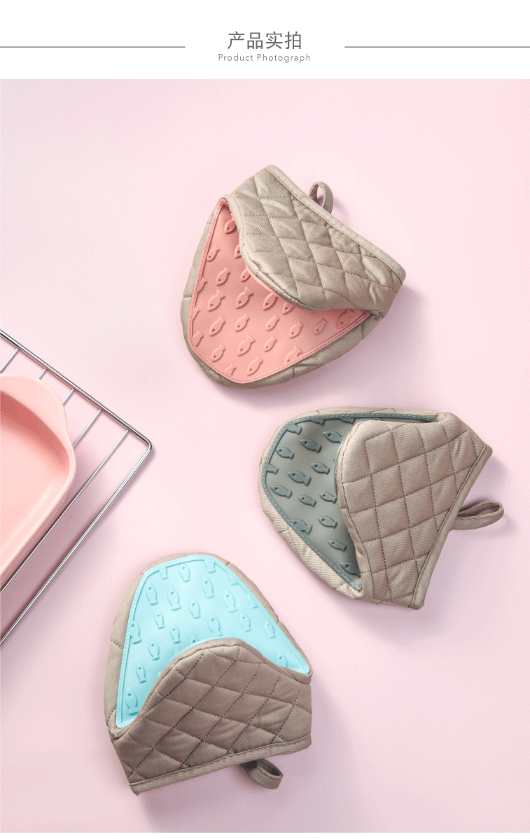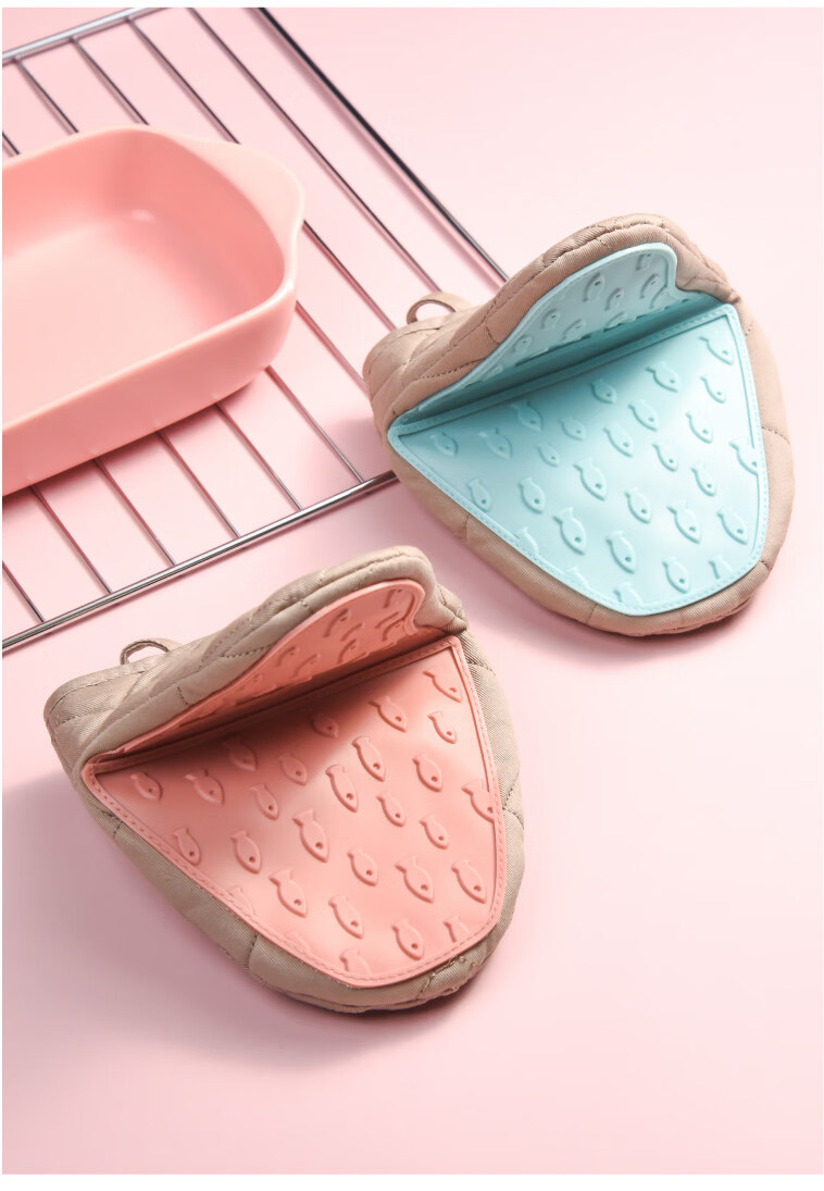 Hanjing Longjing Pomelo anti-scalding gloves thickened silicone insulation oven microwave casserole hand clamp baking household anti-slip clamp pink 1 piece