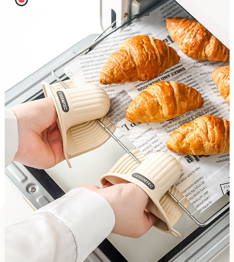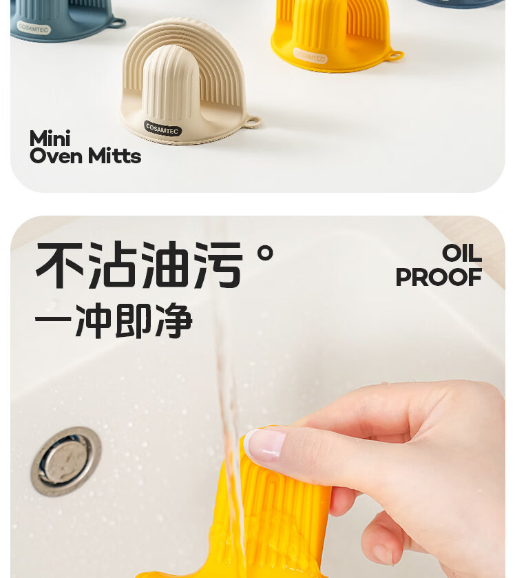 Hanjinglong thickened silicone anti-scalding gloves microwave oven baking heat insulation hand clip high temperature heat insulation gloves mini silicone gloves khaki apricot 2 pieces