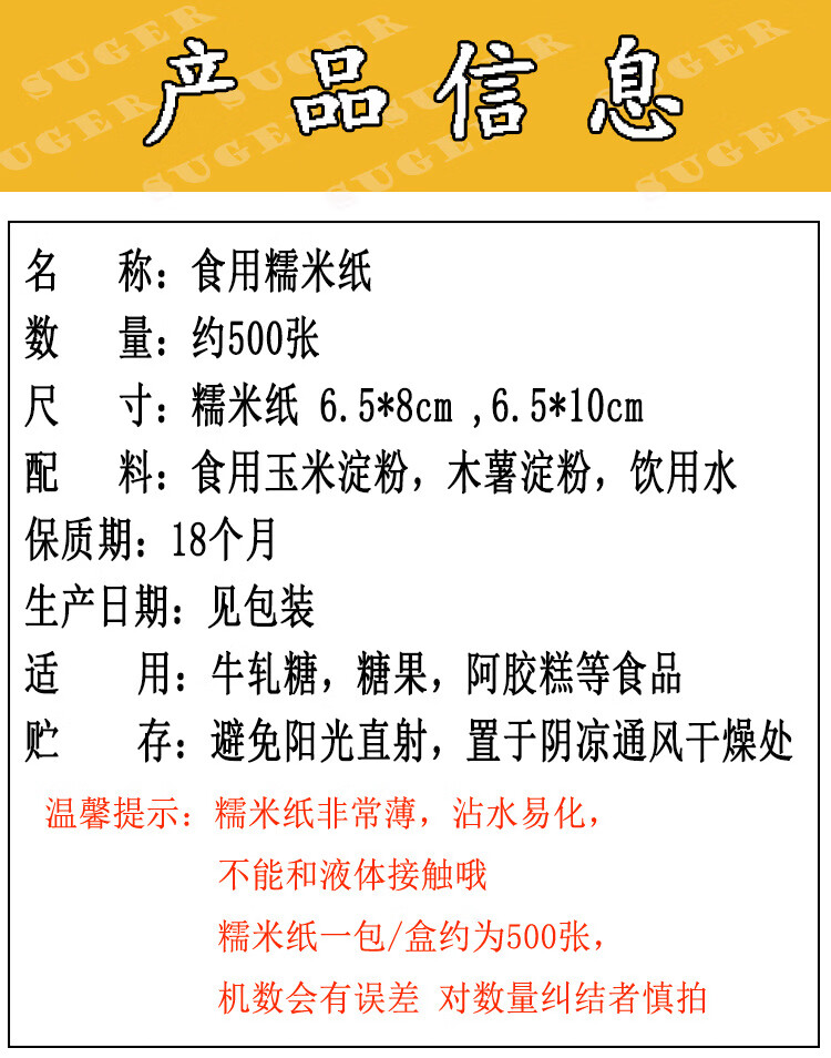 Shantou Lincun glutinous rice paper edible nougat donkey hide gelatin cake wrapping paper Guyuan paste candy toffee oil paper edible glutinous rice paper 8*12cm bag 1000 sheets buy two get one free