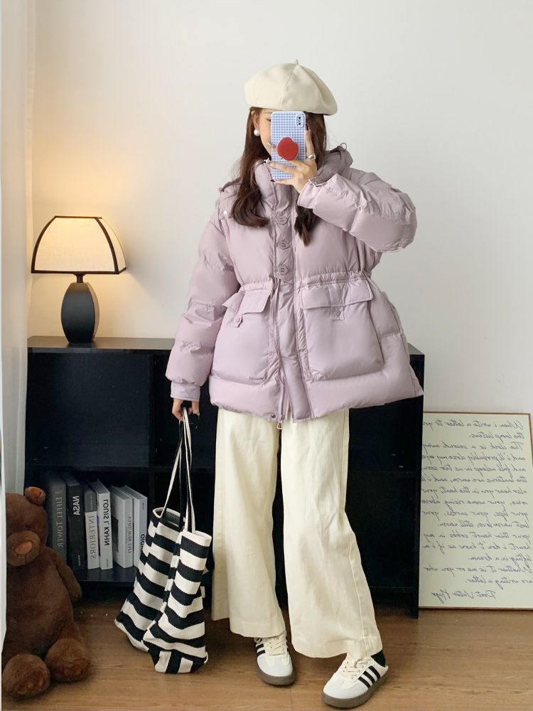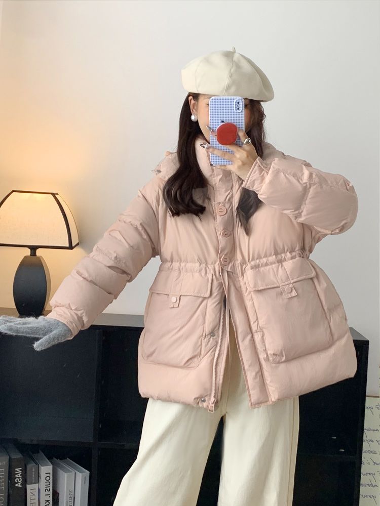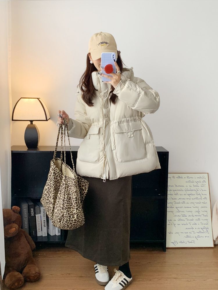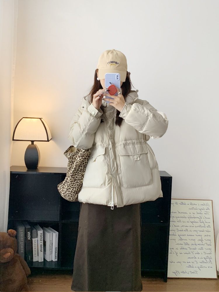 Playboy (PLAYBOY) 2026 Winter New White Duck Down Short Bread Jacket Women Korean Style Loose Thickened Waist Hooded Down Jacket Official Flagship Milky White S Suitable for 80-125 Jin Jin equals 0.5 kg
