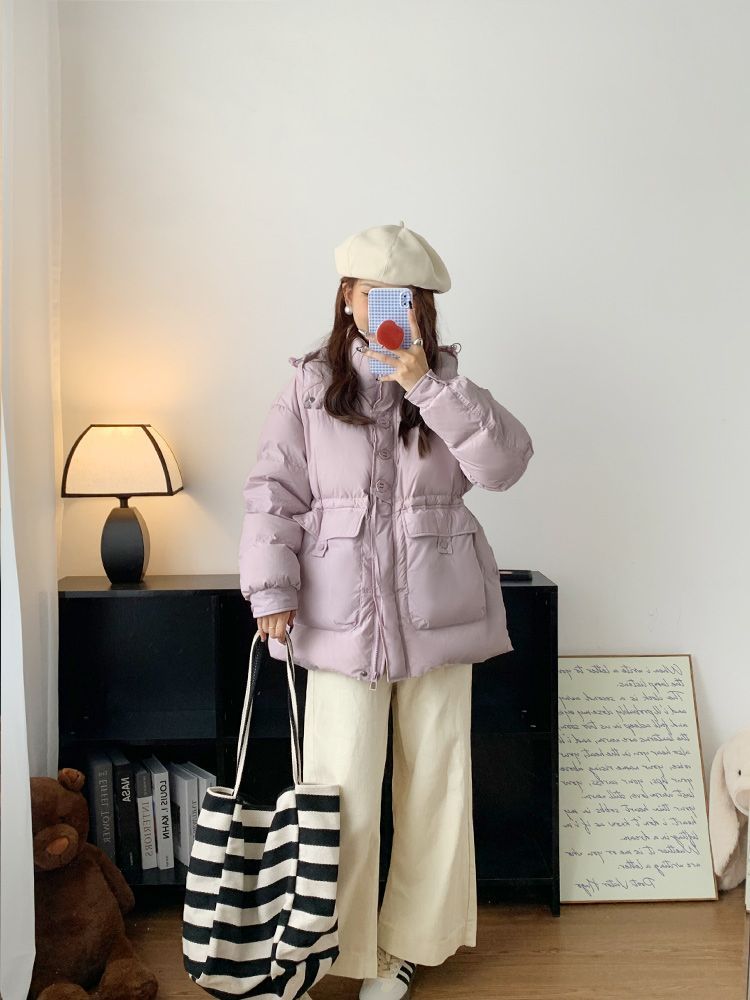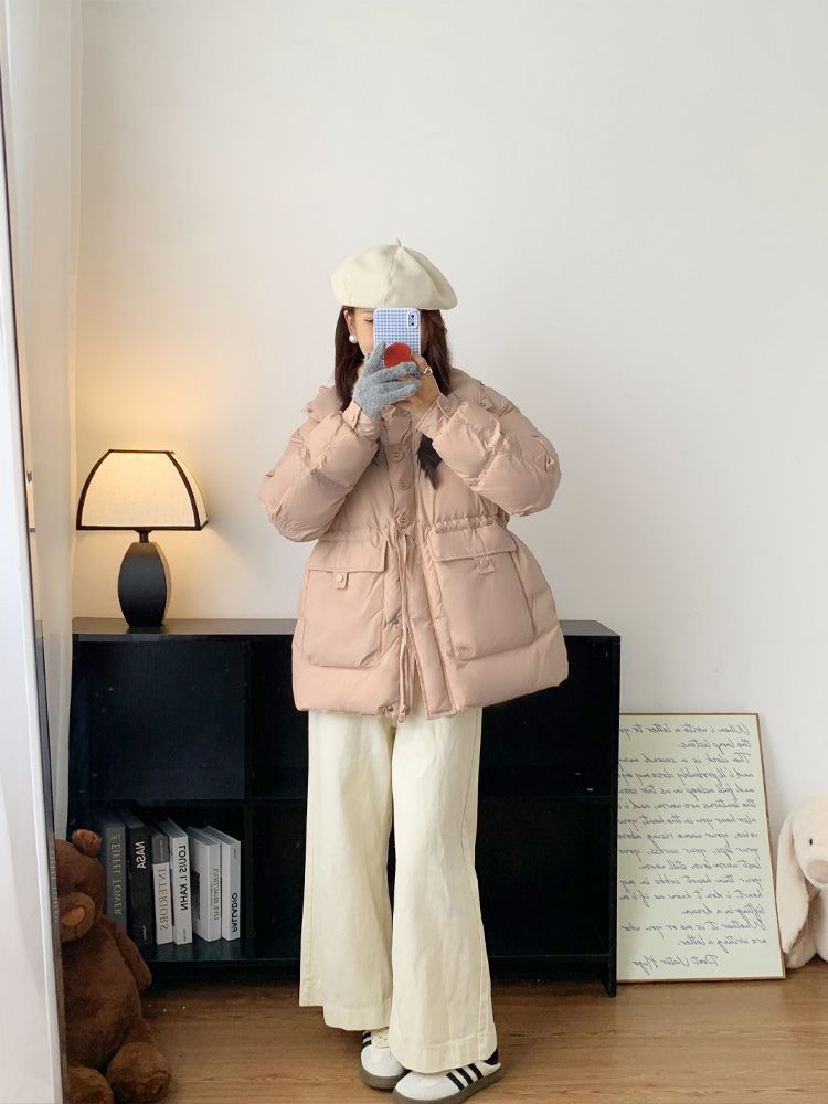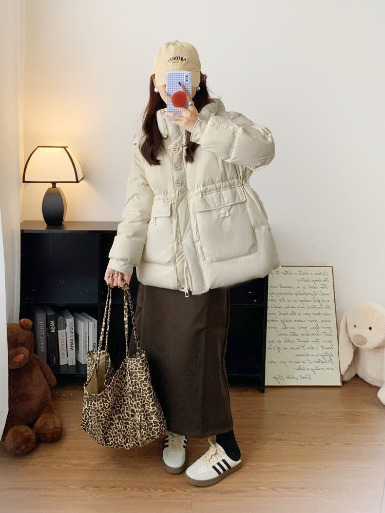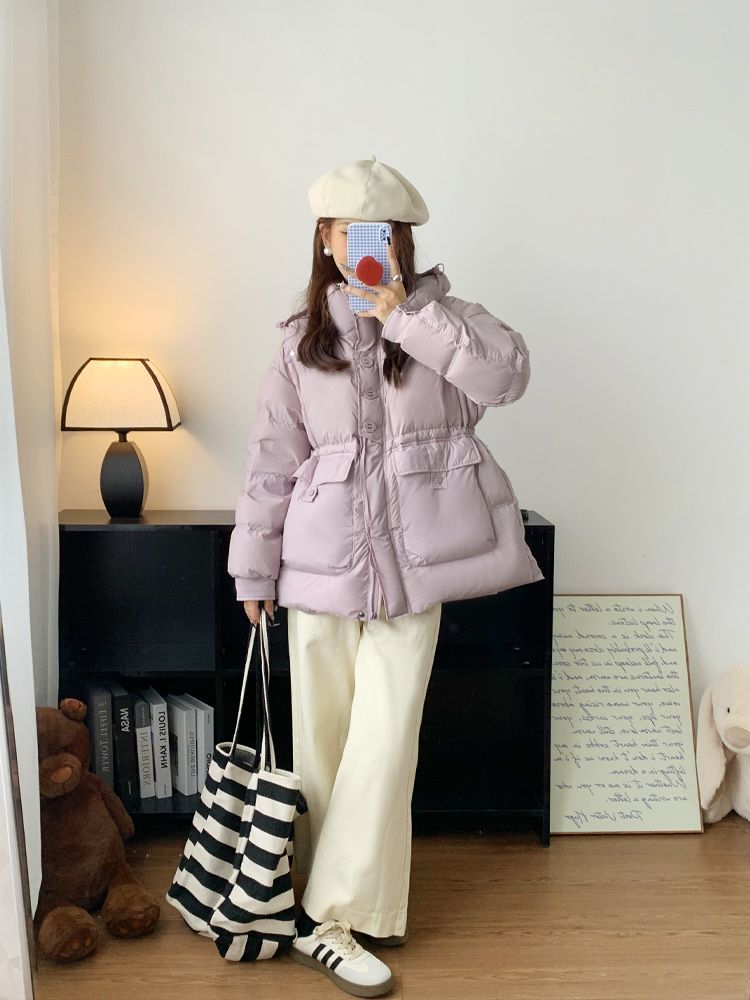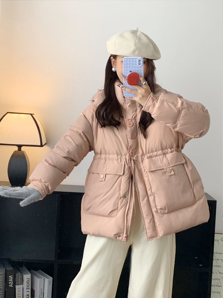 Playboy (PLAYBOY) 2026 Winter New White Duck Down Short Bread Jacket Women Korean Style Loose Thickened Waist Hooded Down Jacket Official Flagship Milky White S Suitable for 80-125 Jin Jin equals 0.5 kg