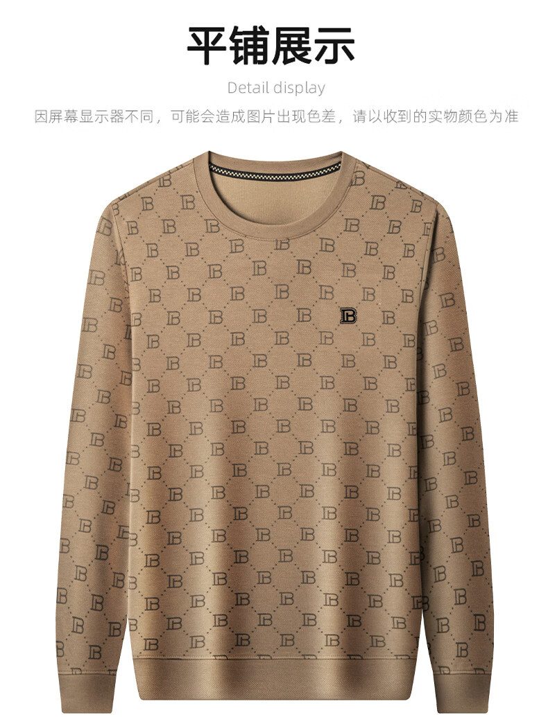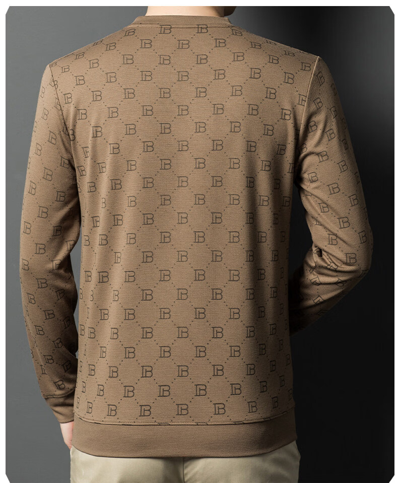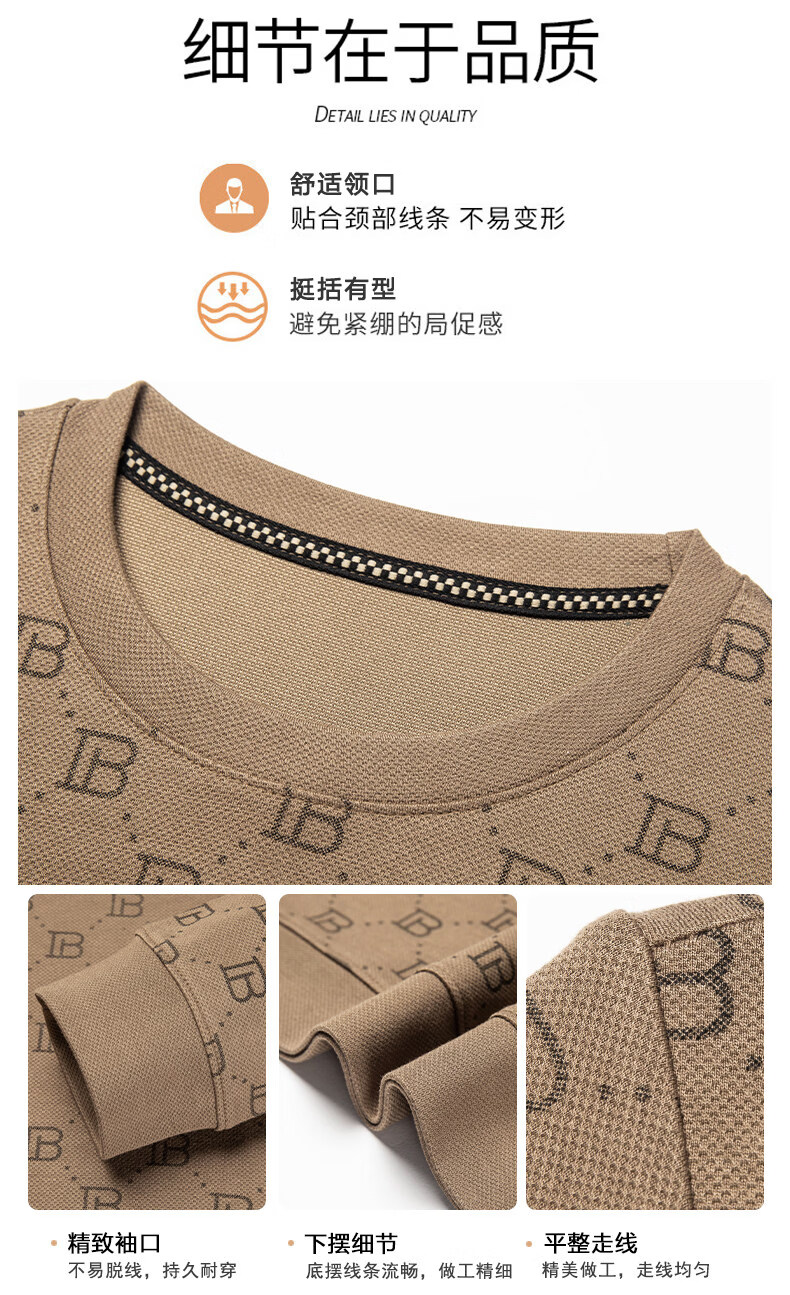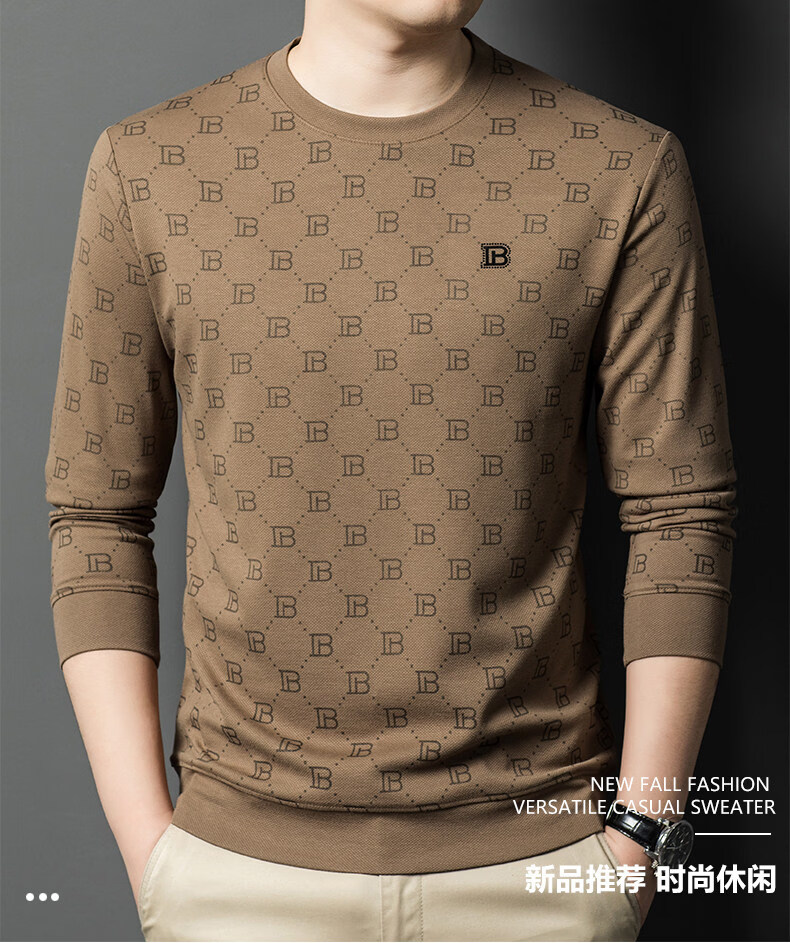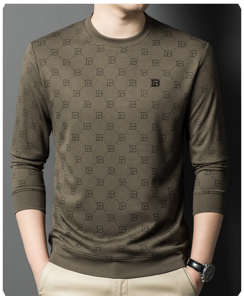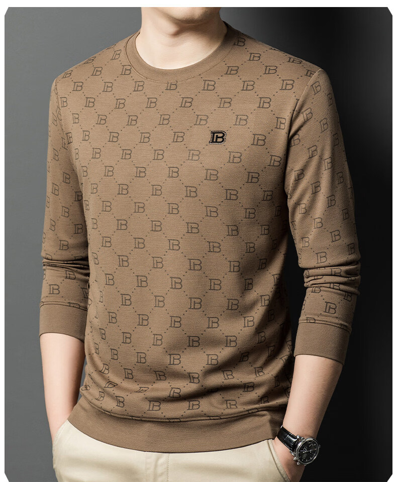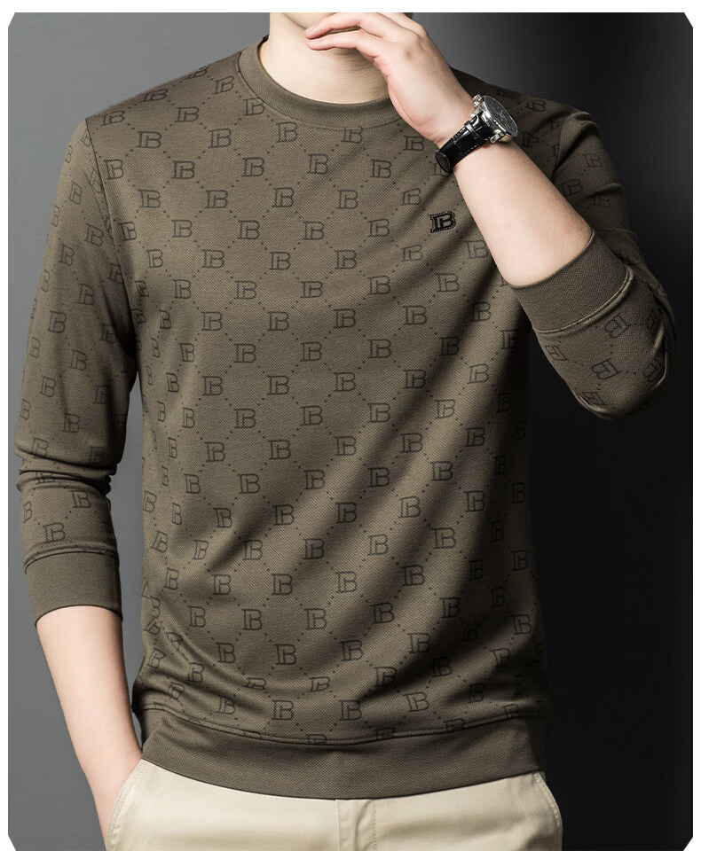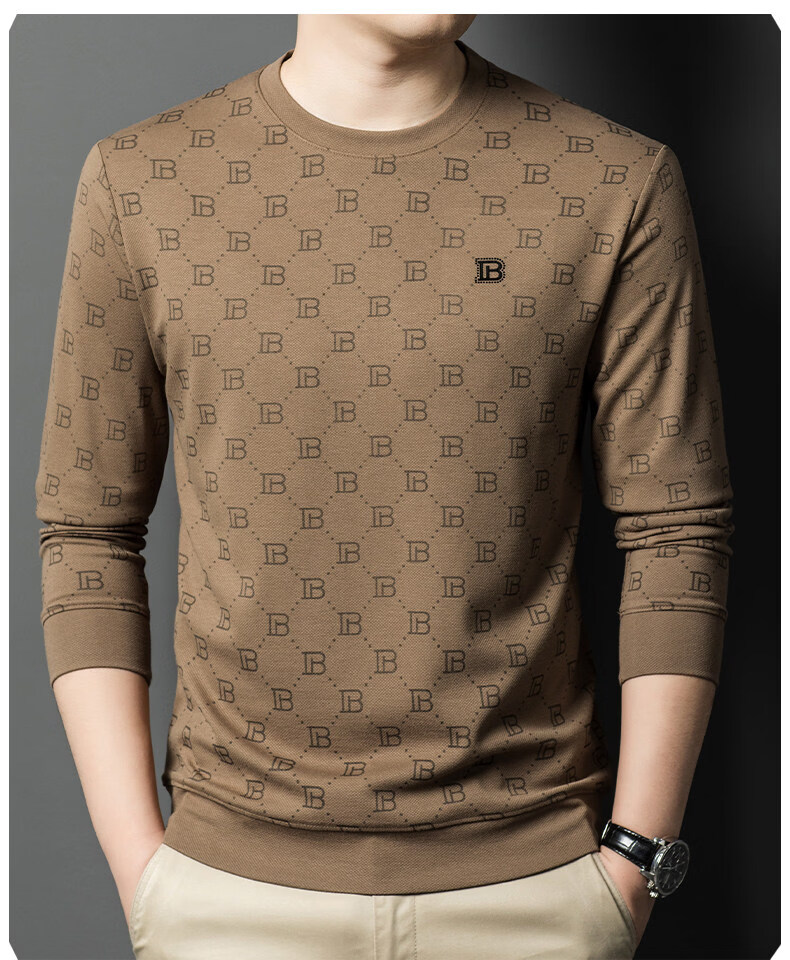 EASTERN CAMEL luxury high-end pure cotton long-sleeved T-shirt men's round neck 2026 spring new fashion casual bottoming shirt sweatshirt for men without velvet khaki 2XL (180) 160-175Jin Jin equals 0.5 kg