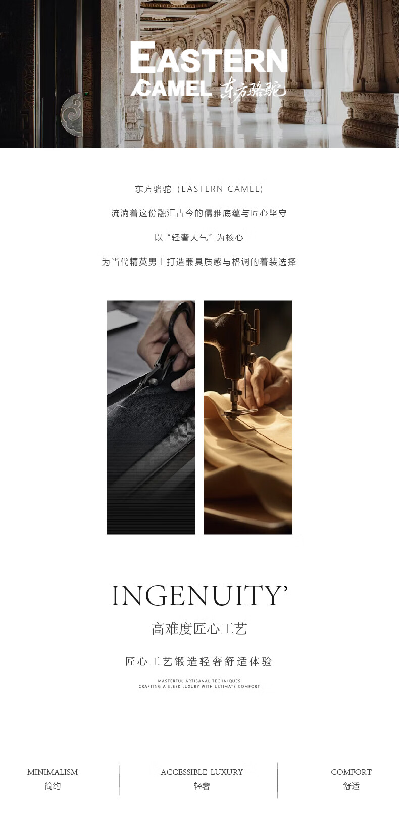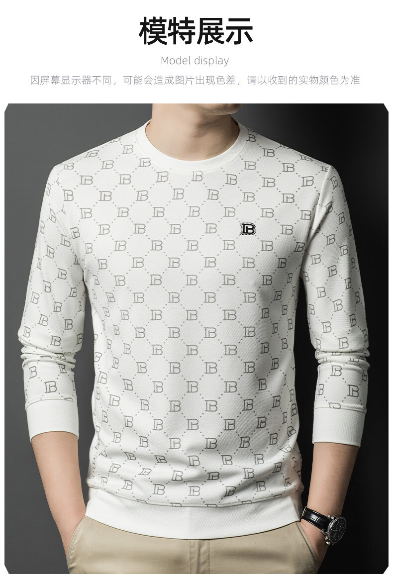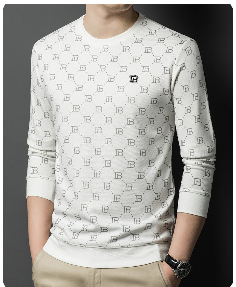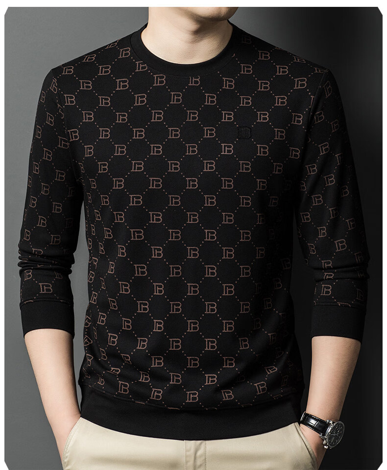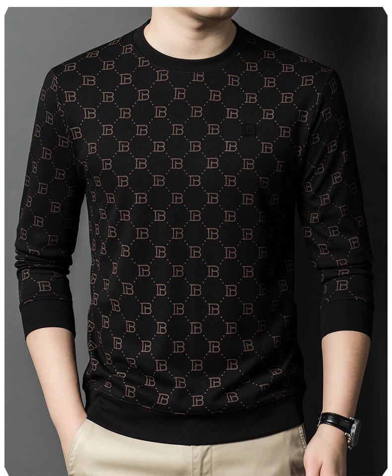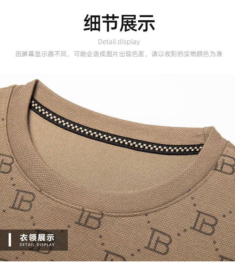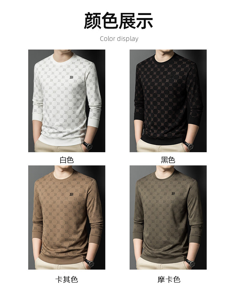 EASTERN CAMEL luxury high-end pure cotton long-sleeved T-shirt men's round neck 2026 spring new fashion casual bottoming shirt sweatshirt for men without velvet khaki 2XL (180) 160-175Jin Jin equals 0.5 kg