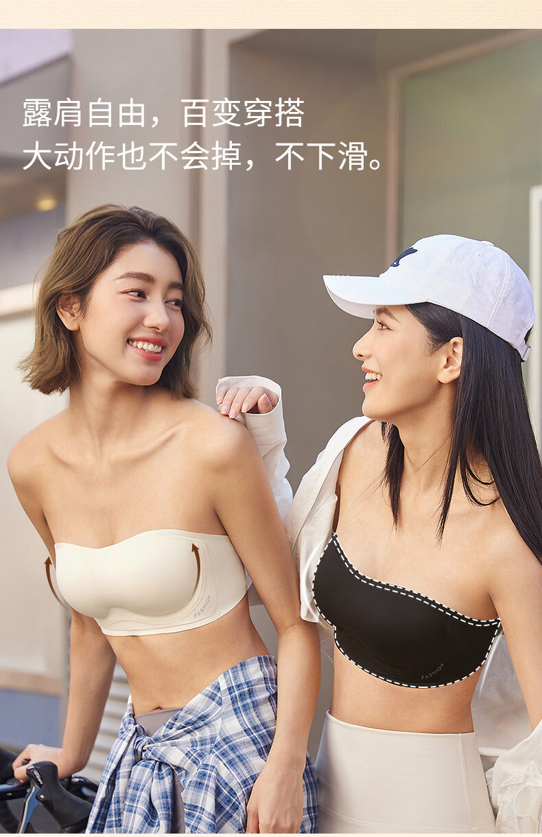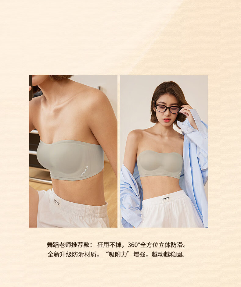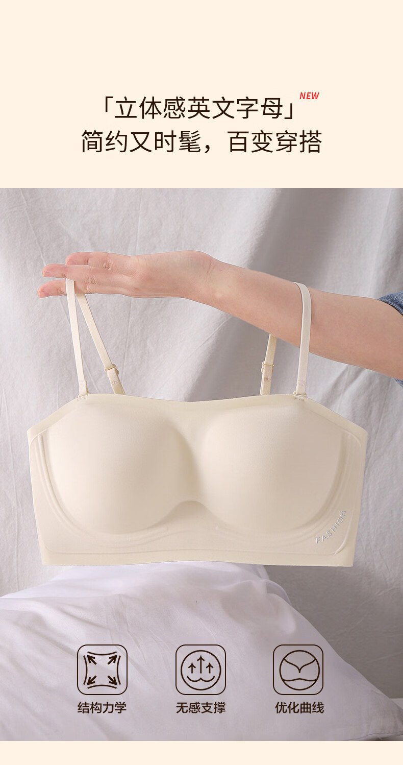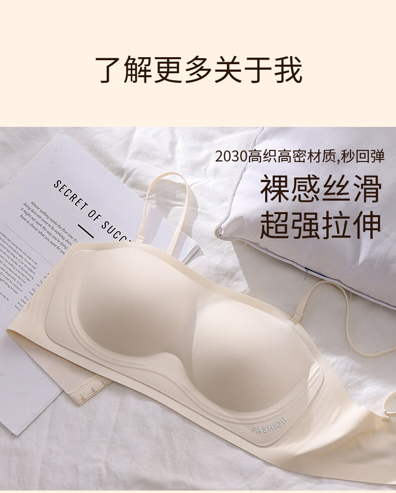 Tingmei (GRACWELL) strapless underwear for women, non-slip, small breasts, invisible, seamless, beautiful back-wrap bra, tube top, milky white + milky white S, recommended 32/70AB