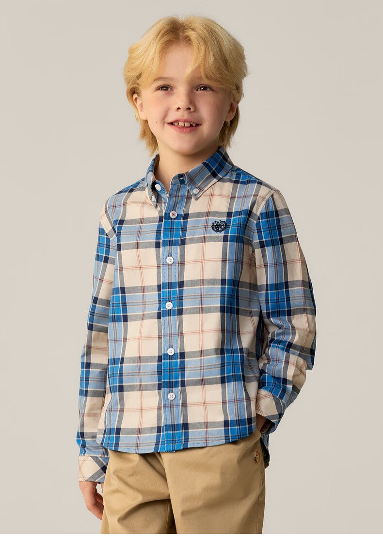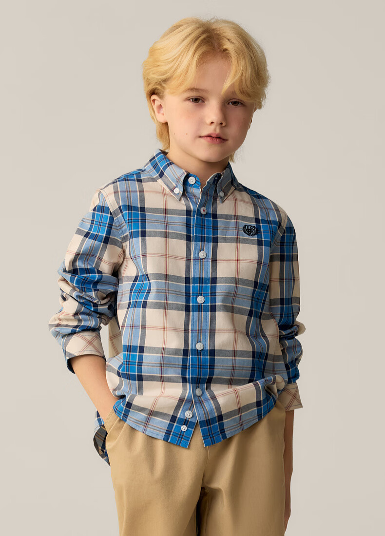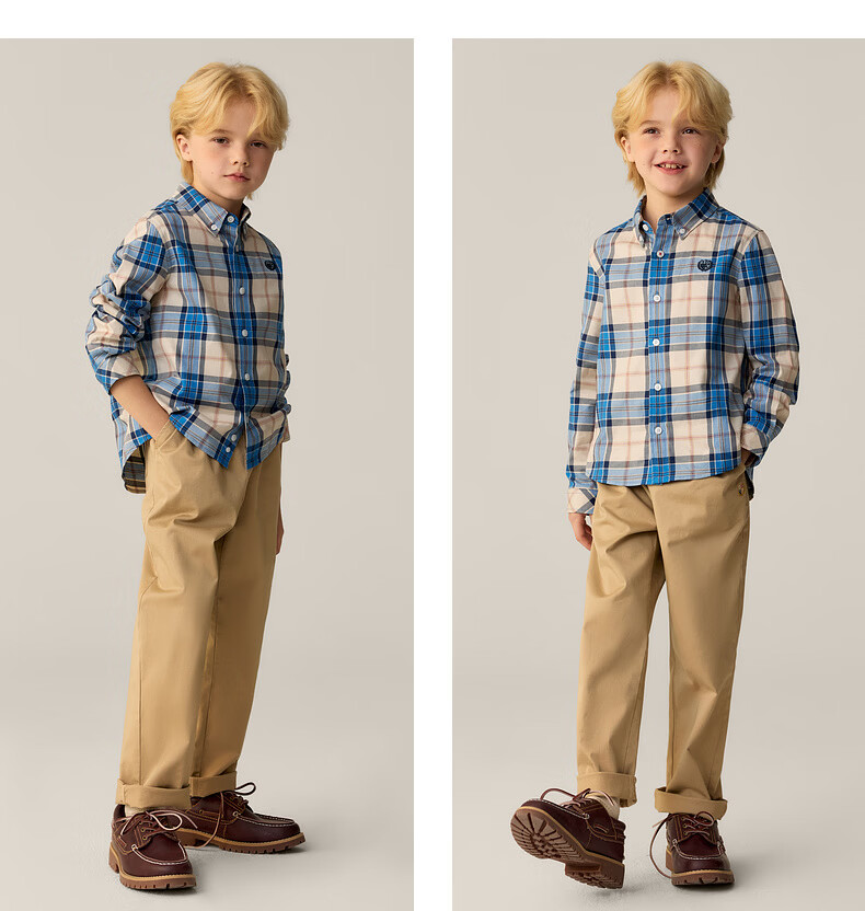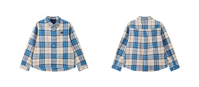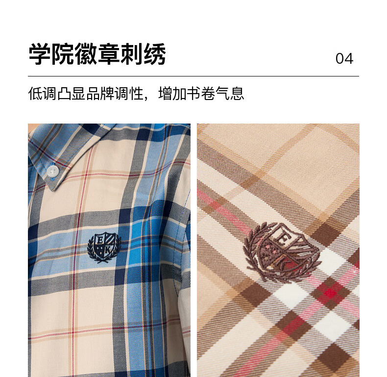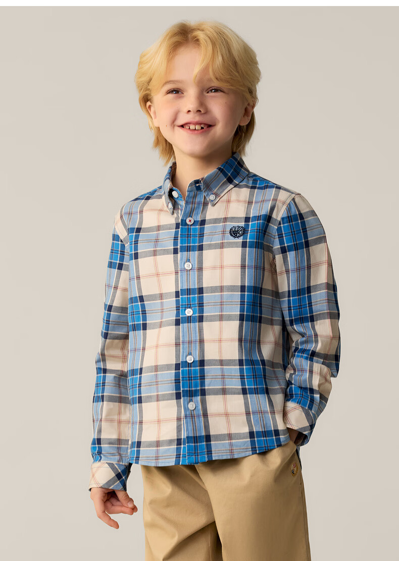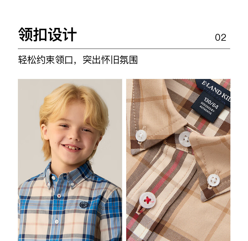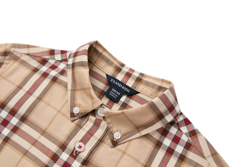 E LAND KIDS pedophile boys' shirt 26 spring new British style embroidered lapel plaid top Beige beige/35 110