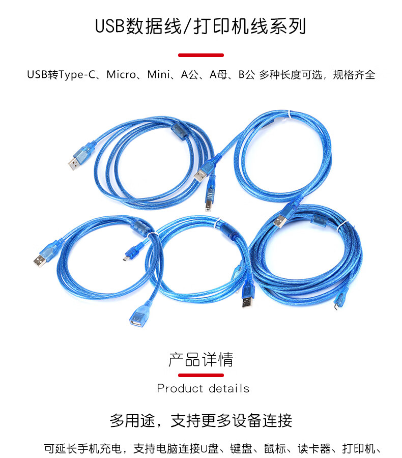 YourCeeUSB data cable/printer cable USB to Type-C/Micro/Mini/A male/A female/B male magnetic/non-magnetic USB smart universal charging cable 0.5m-USB to micro_without magnetic ring