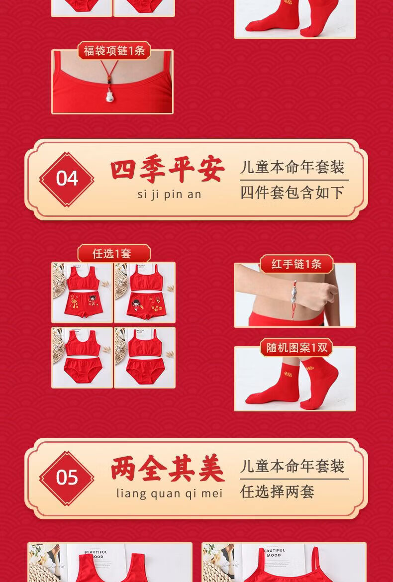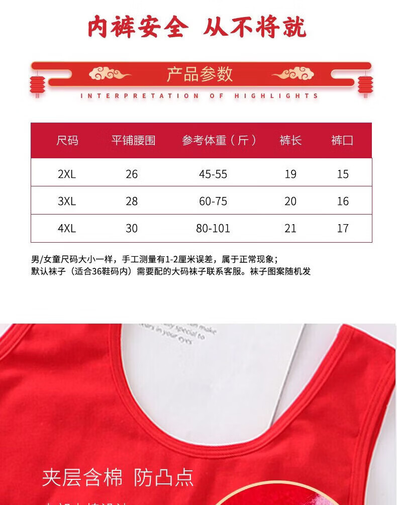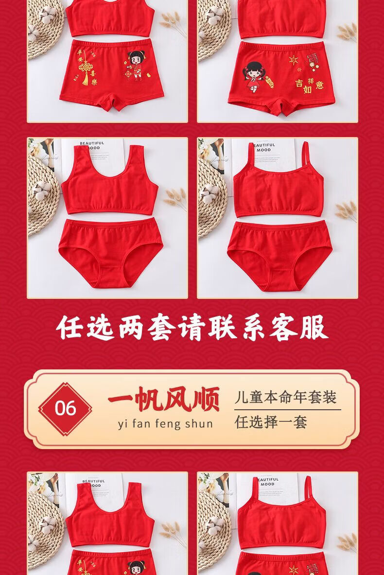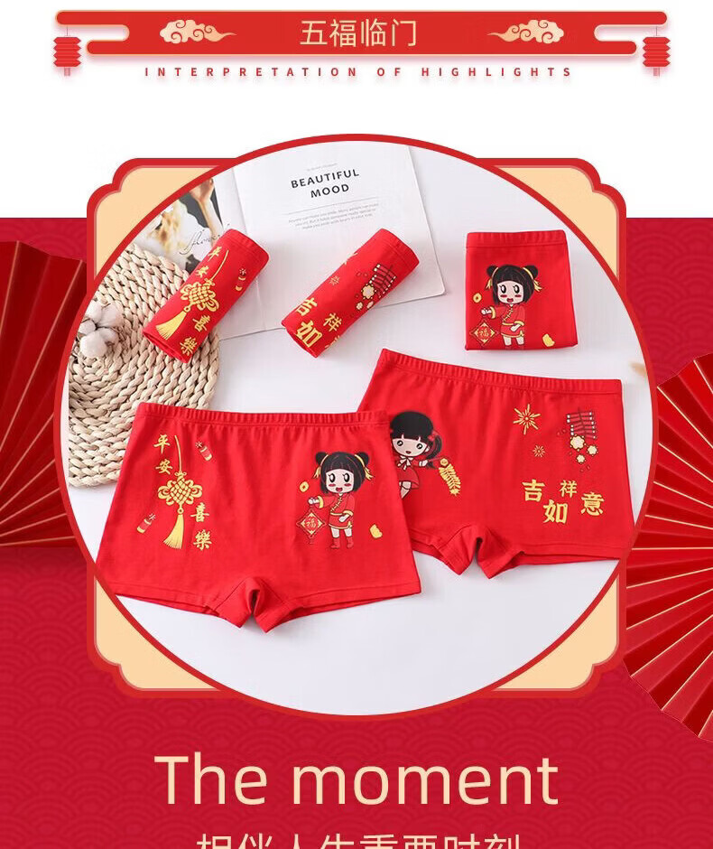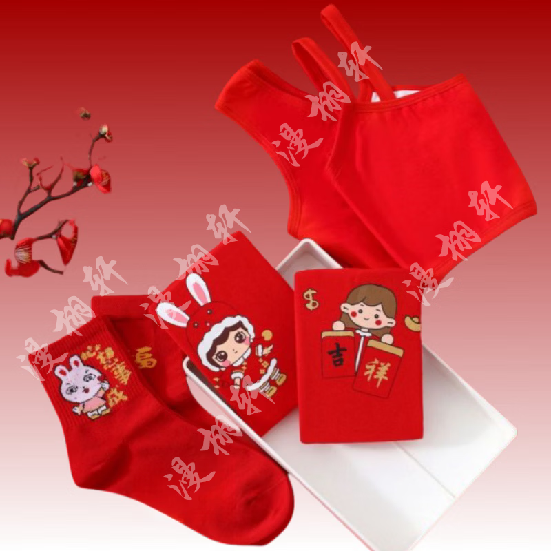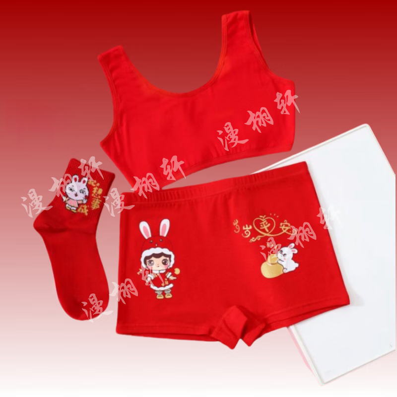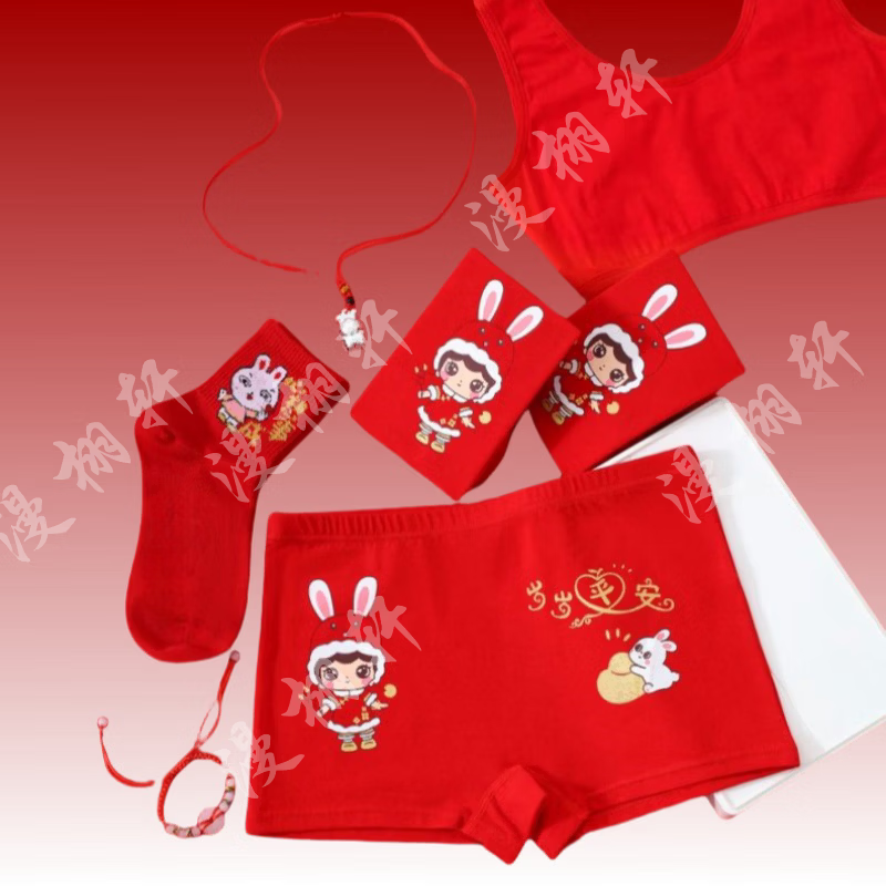 Modal children's underwear set, horse year 12 years old, zodiac year girls underwear 2026 development period vest underwear red, safe and happy little princess 5-piece set, pants + shirt + socks + hands + items 180 2XL code (45-55Jin Jin is equal to 0.5 kg)