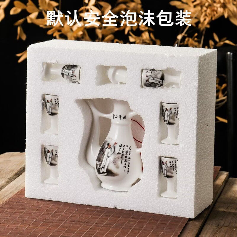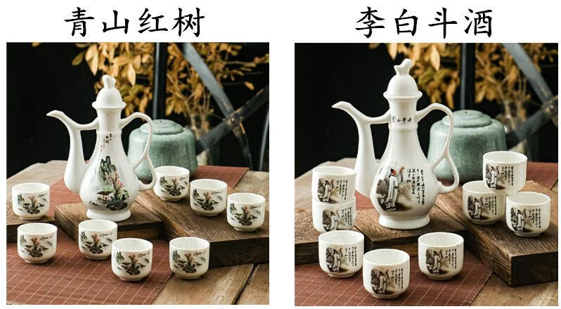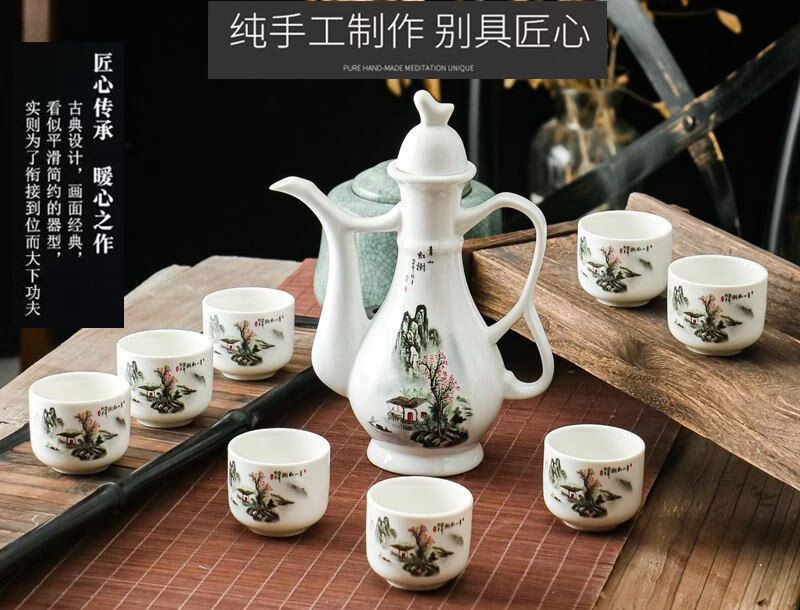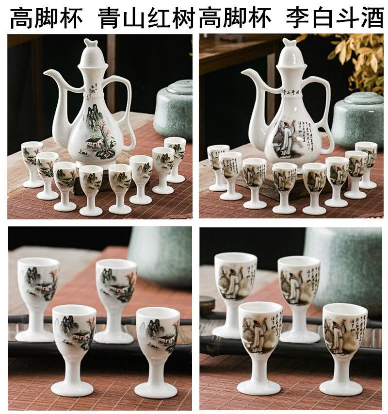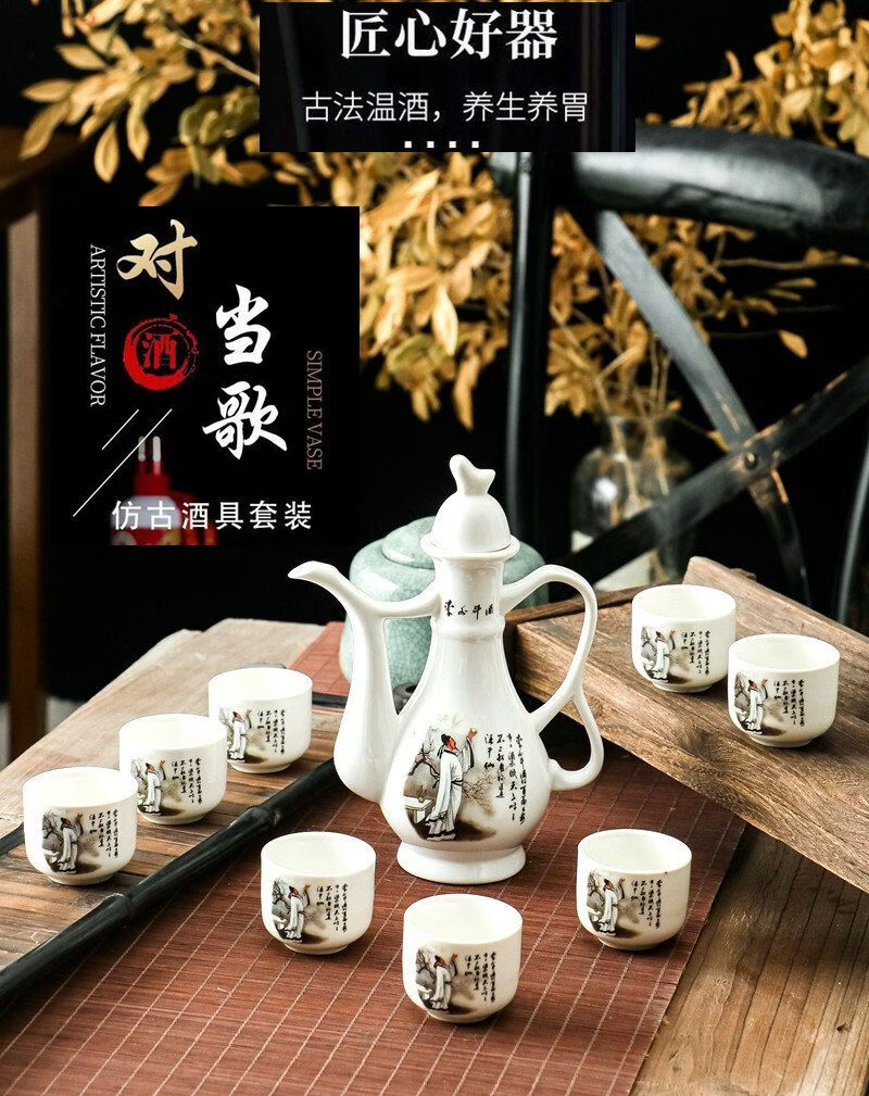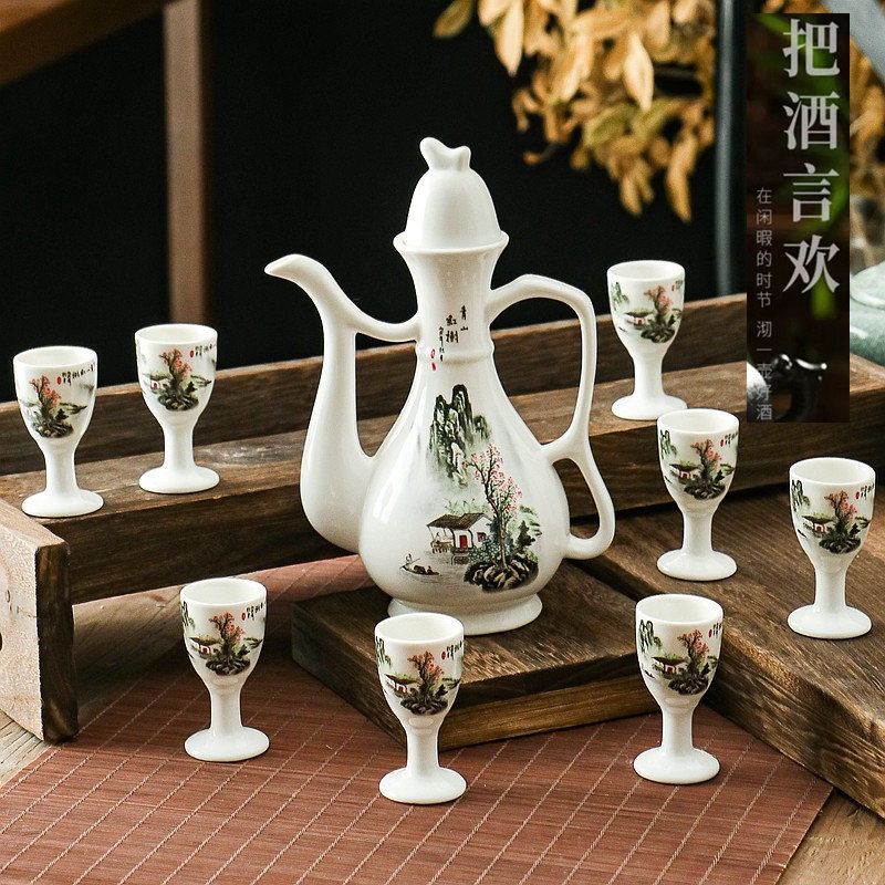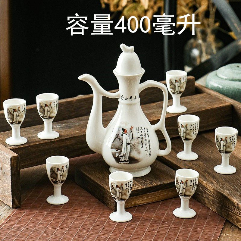 Fantasy goblet ceramic wine set wine pot wine glass wine cup household Chinese antique wine set wine pot ancient old-fashioned Li Bai Dou wine 9-piece set straight cup