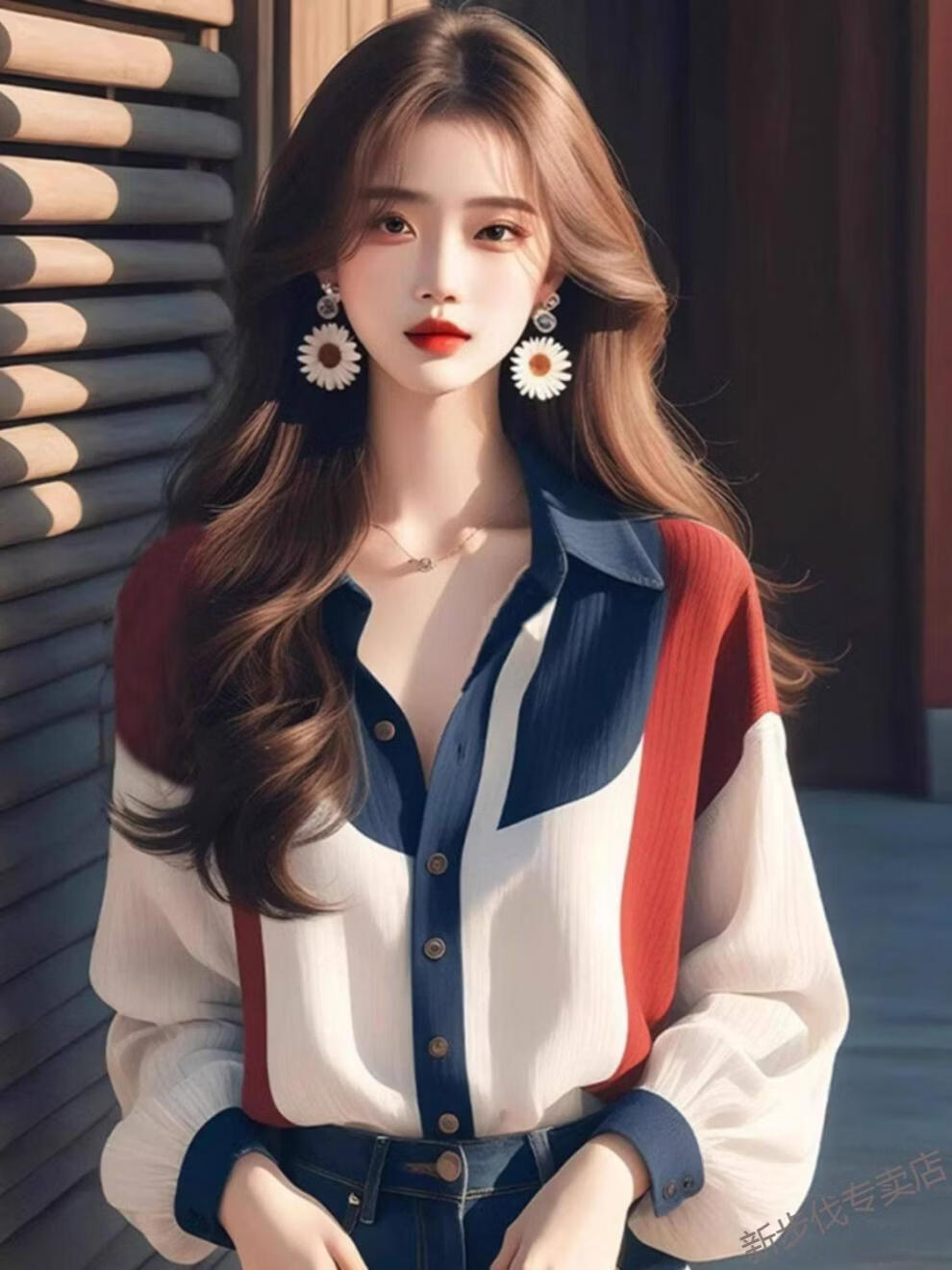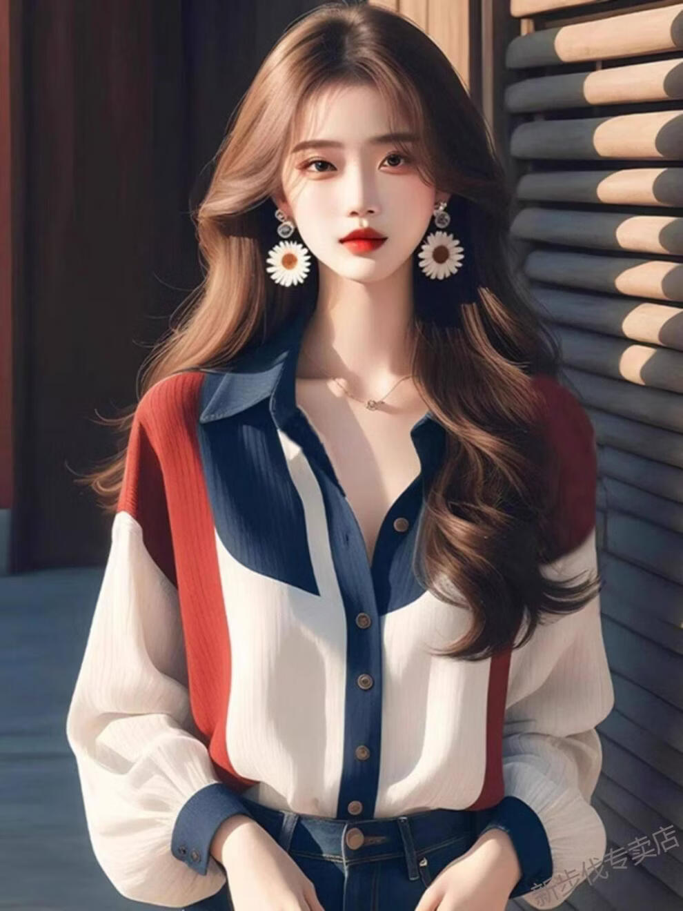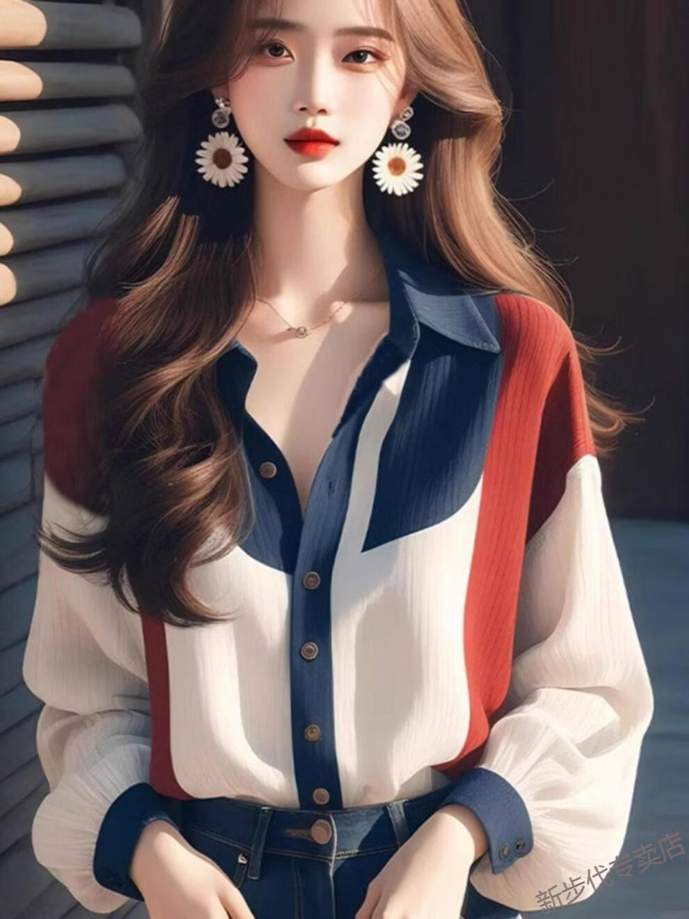 Woodpecker (TUCANO) Contrast Color Lantern Sleeve Shirt Women's Spring Clothing 2026 New French Retro Cold Style High-End Beautiful Top Picture Color XL 115-125