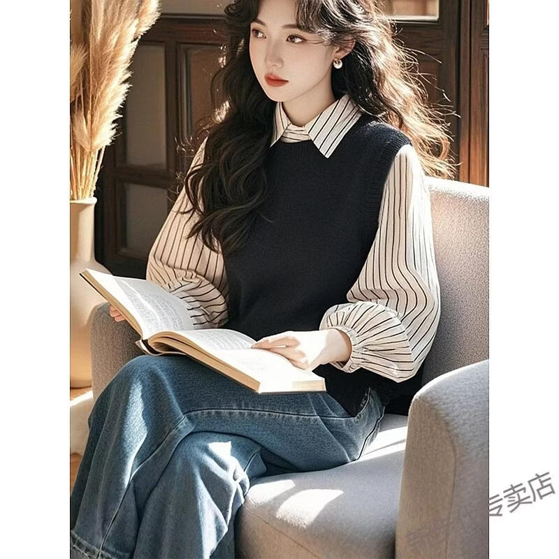 The popular style of Woodpecker (TUCANO) this year is good-looking, unique, beautiful, fashionable and old-looking white striped fake two-piece shirt 5198-black style. Collection, purchase and priority delivery. S Recommendation: 80-95Jin Jin is equal to 0.5kg