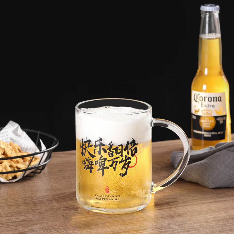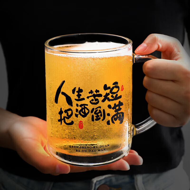 Tuojin large-capacity beer cup glass creative with handle large thickened home draft beer cup Coke cup barbecue shop 700ml beer with ice single