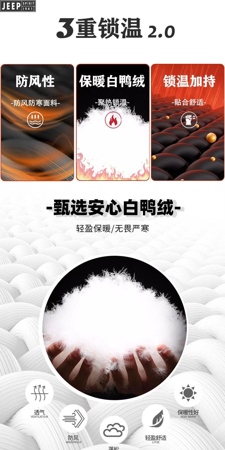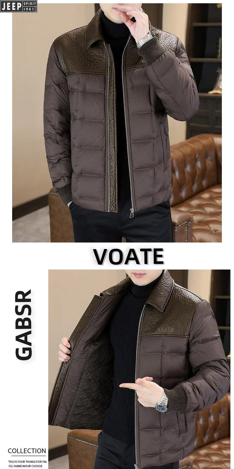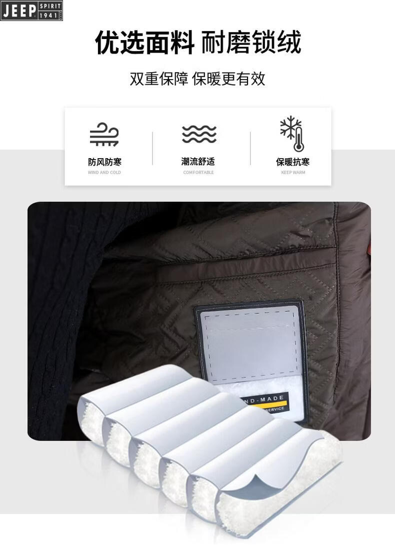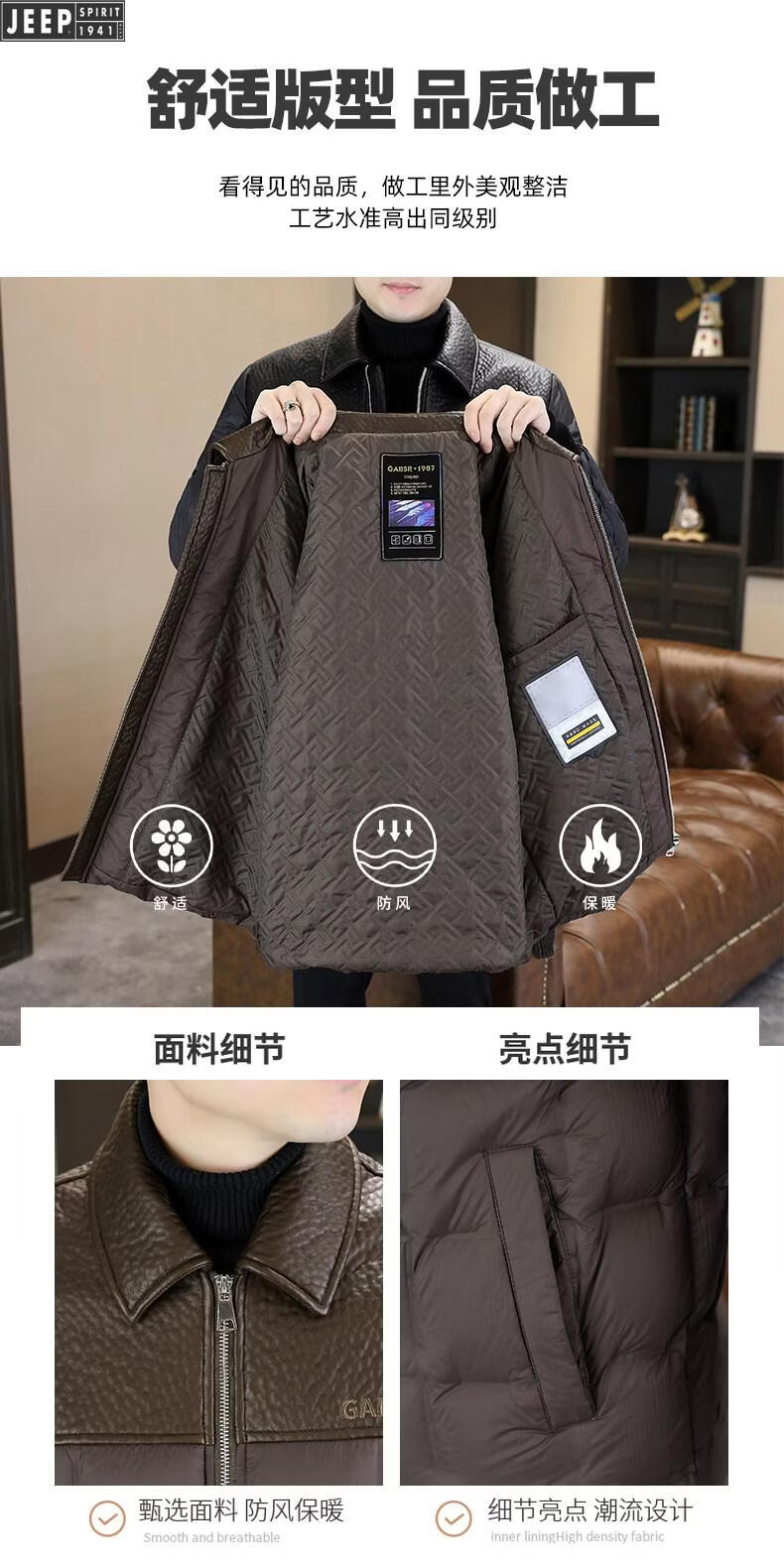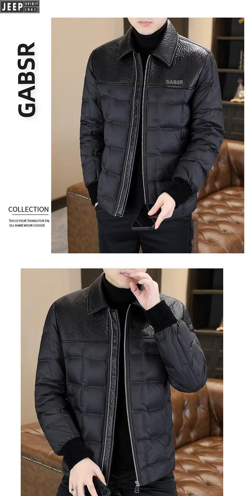 JEEP Jeep men's lapel down jacket winter 2026 new style leather jacket cold-proof warm thickened jacket men's fashion black XL