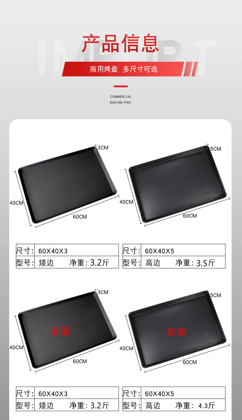 Non-stick baking pan rectangular oven pizza bread pan baking mold non-stick 60*40*3cm short side 3 points 2Jin Jin equals 0.5kg