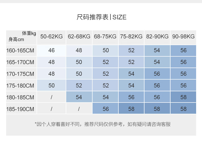 China (cm) 160-165/84-86 165-170 / 88-90 167-172 / 92-96 168-173 / 98-102 170-176 / 106-110