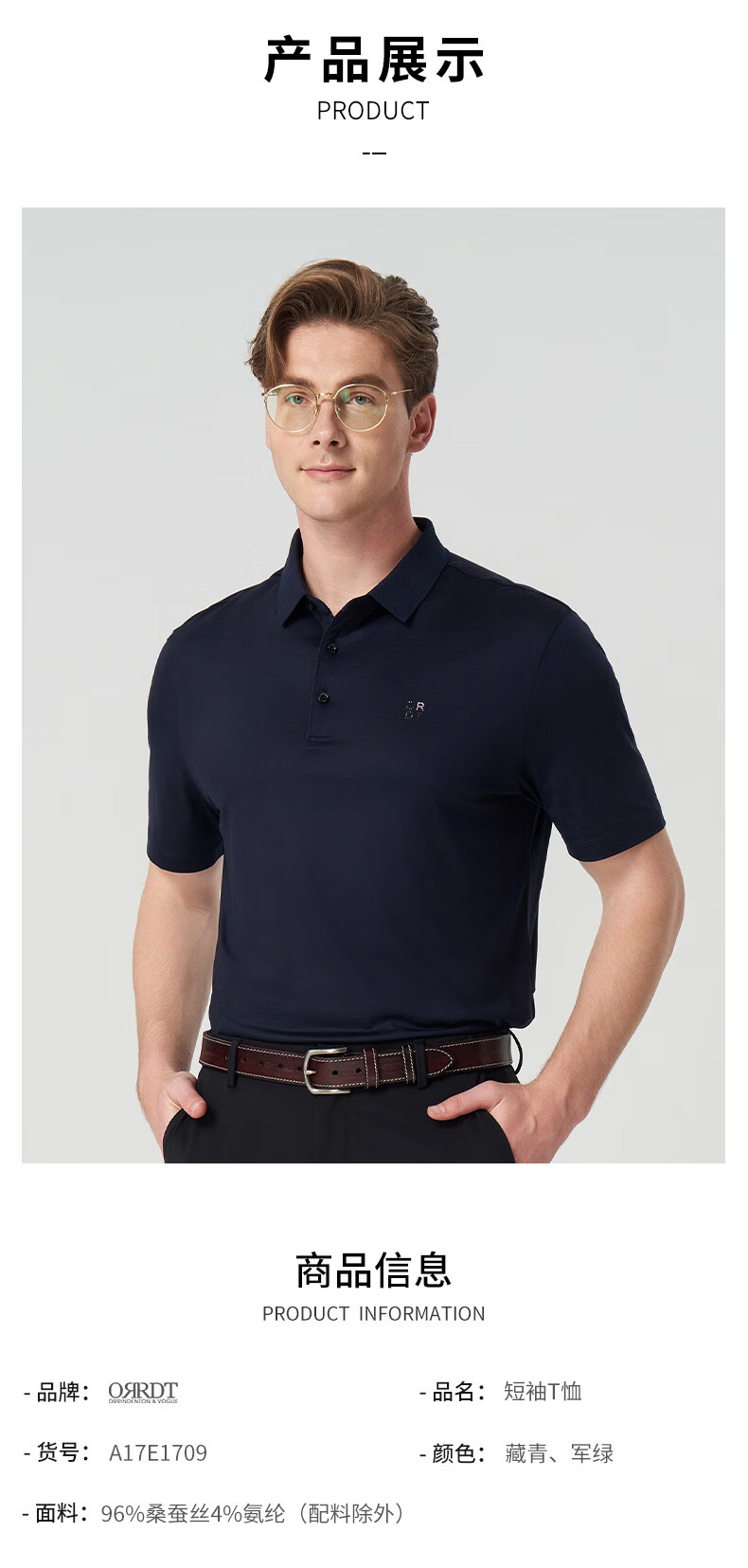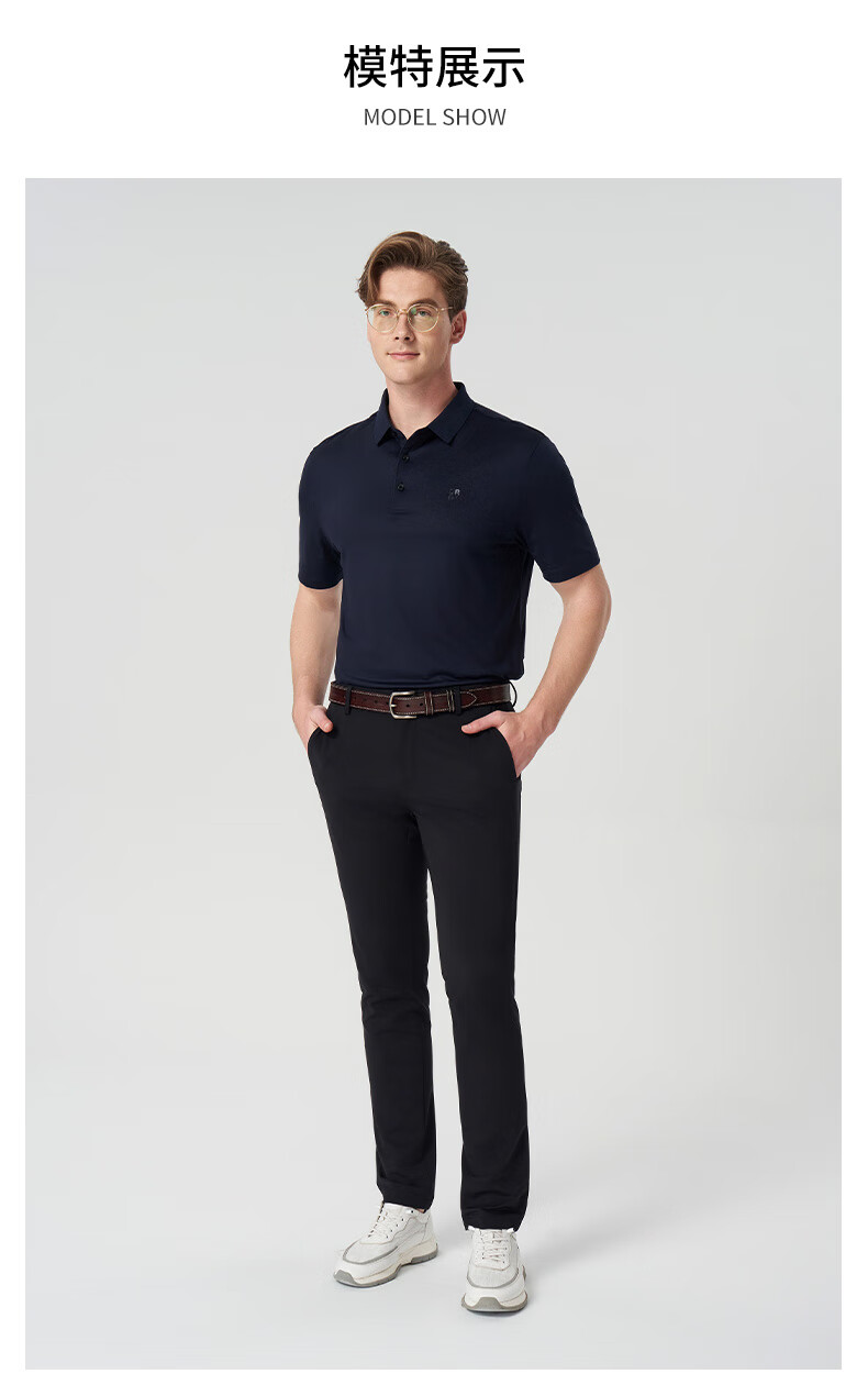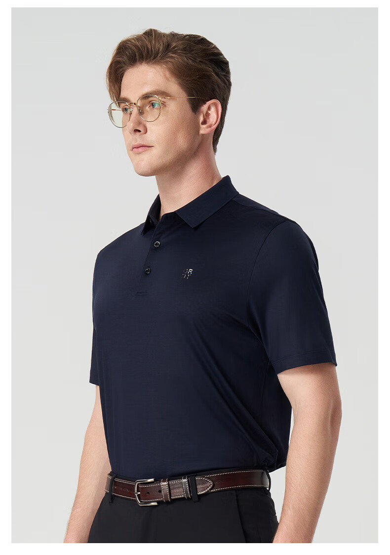 ORRDT Aulindenton luxury men's short-sleeved Polo shirt 26 spring and summer mulberry silk breathable casual T-shirt navy 52 (XL)