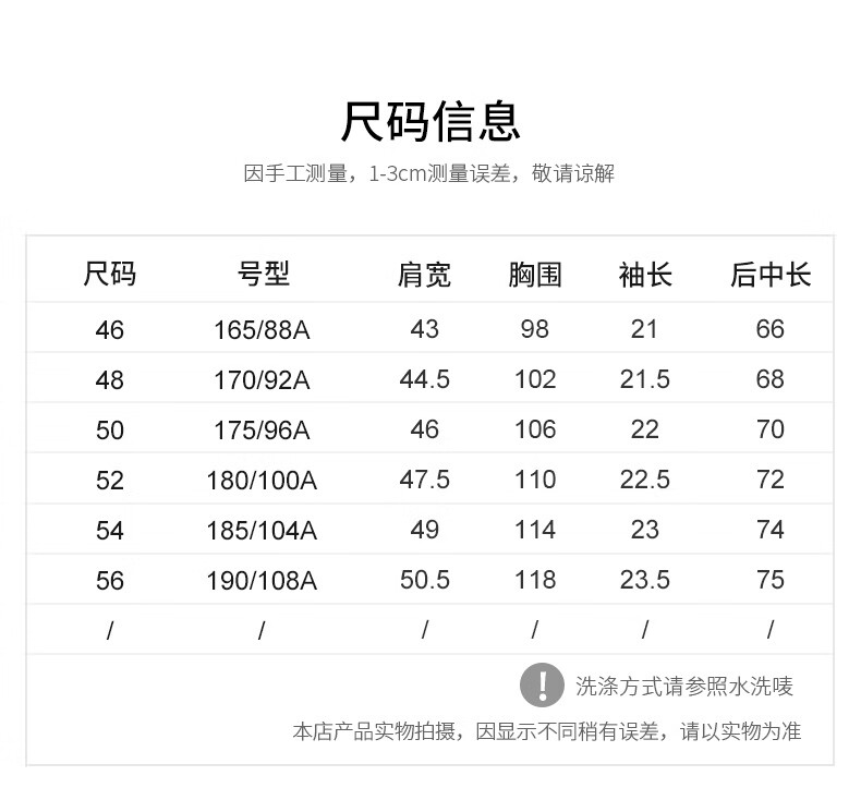 China (cm) 165 / 88-90 170 / 96-98 175 / 108-110 180 / 118-122 185 / 126-130