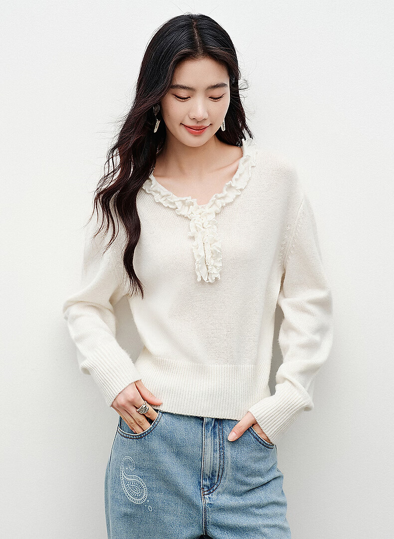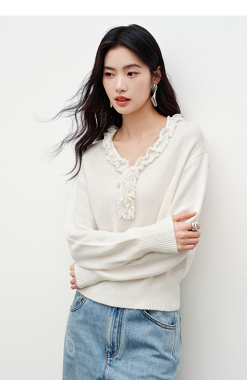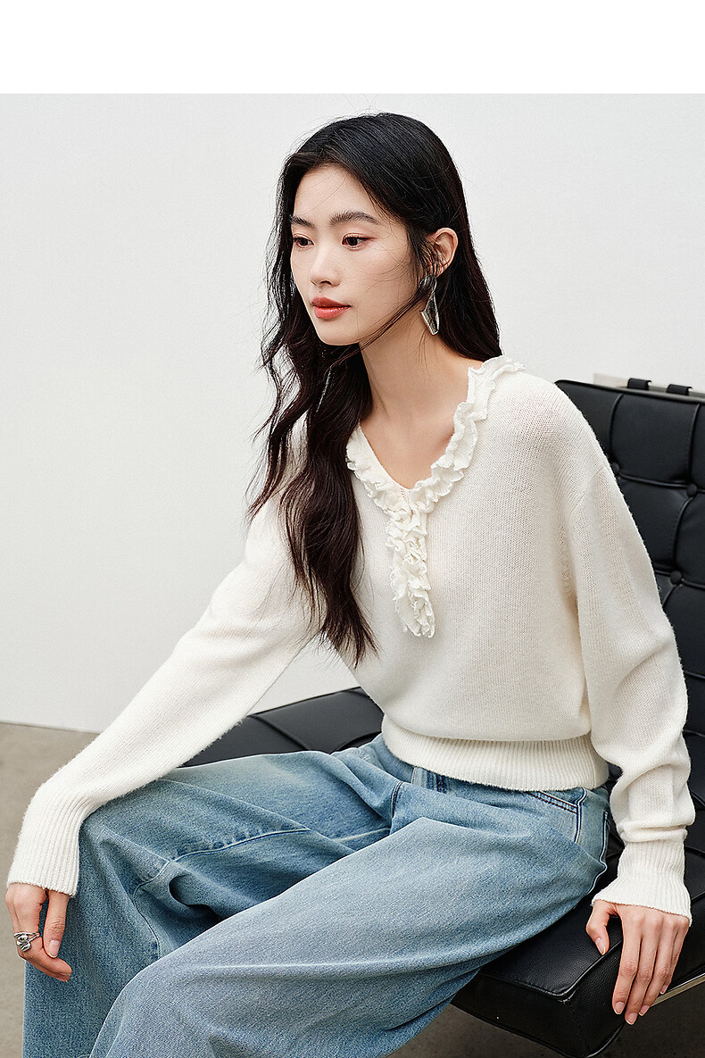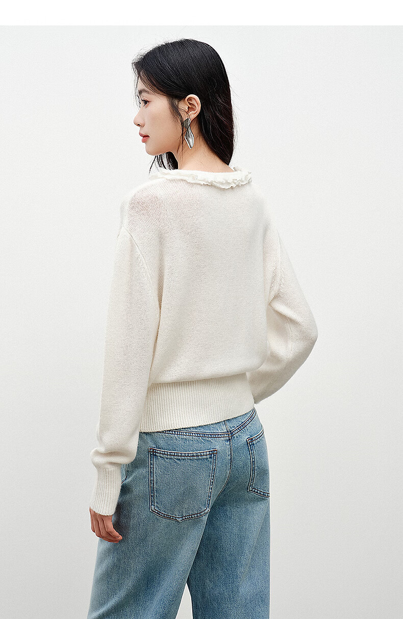 Yixiang Liying White Fungus Collar Sweater Women's 2026 Spring New Loose Lazy Lyocell Wool Top White S