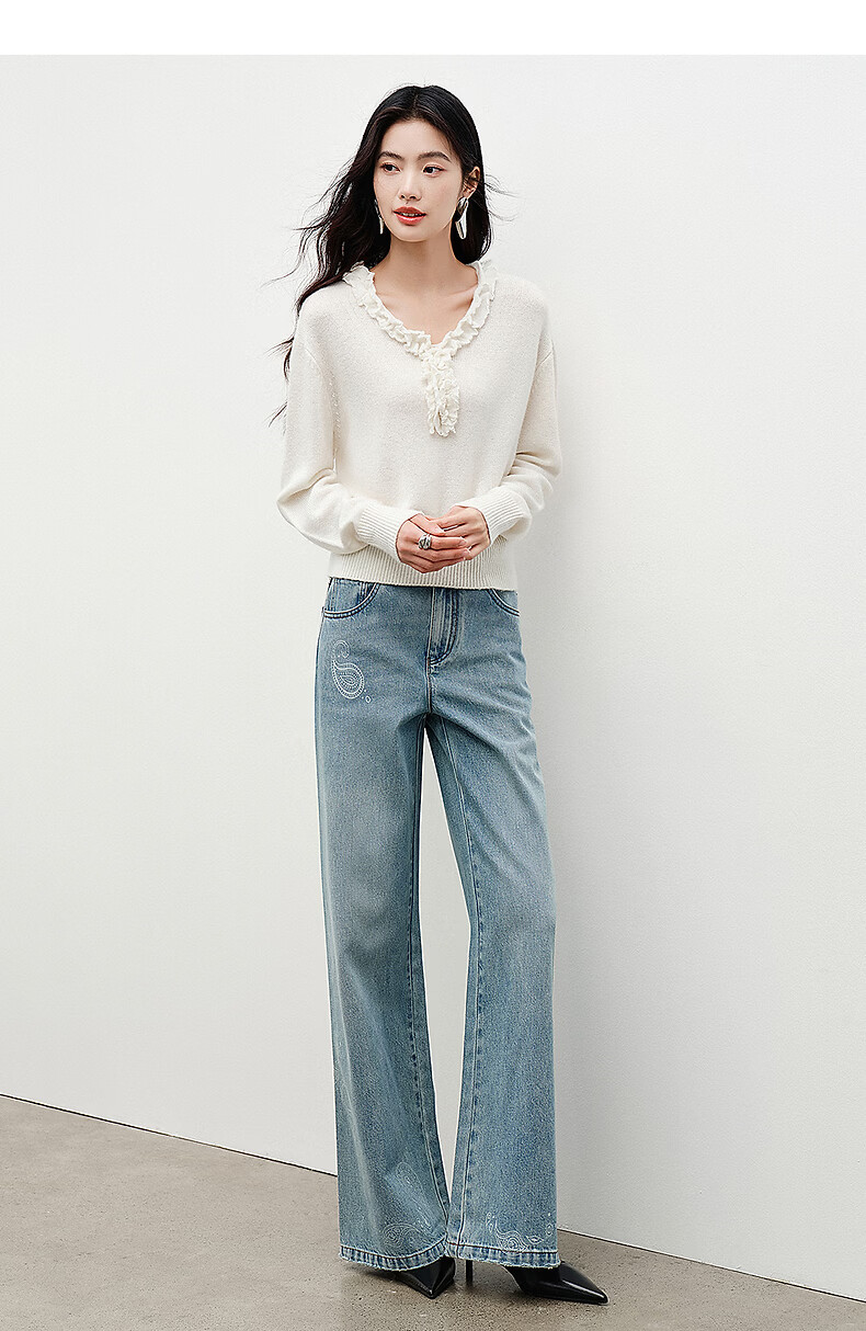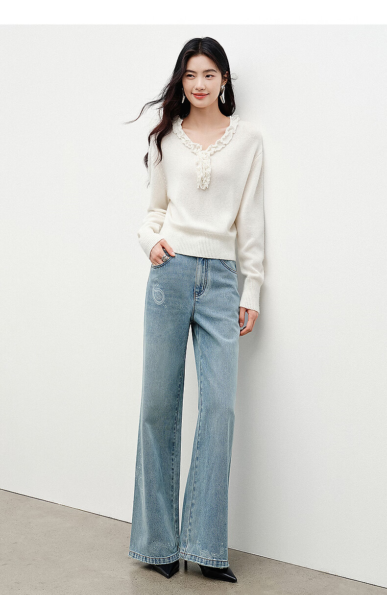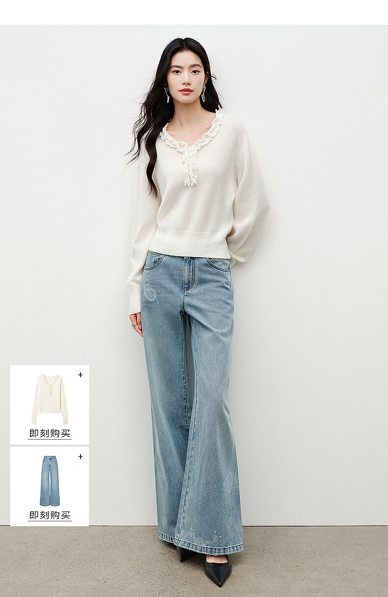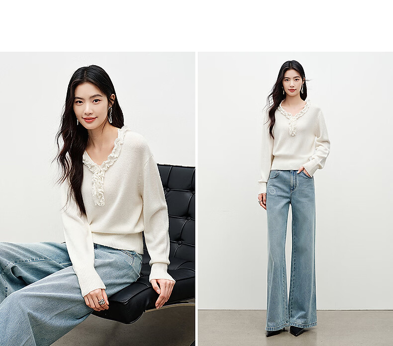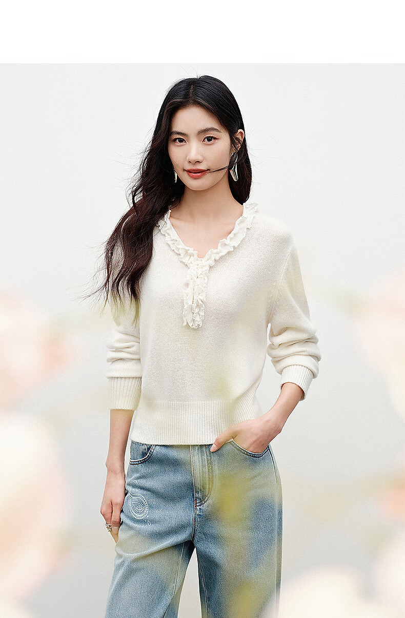 Yixiang Liying White Fungus Collar Sweater Women's 2026 Spring New Loose Lazy Lyocell Wool Top White S