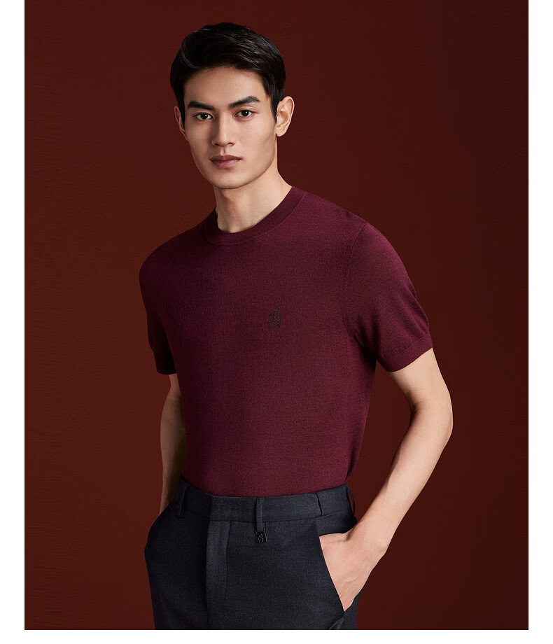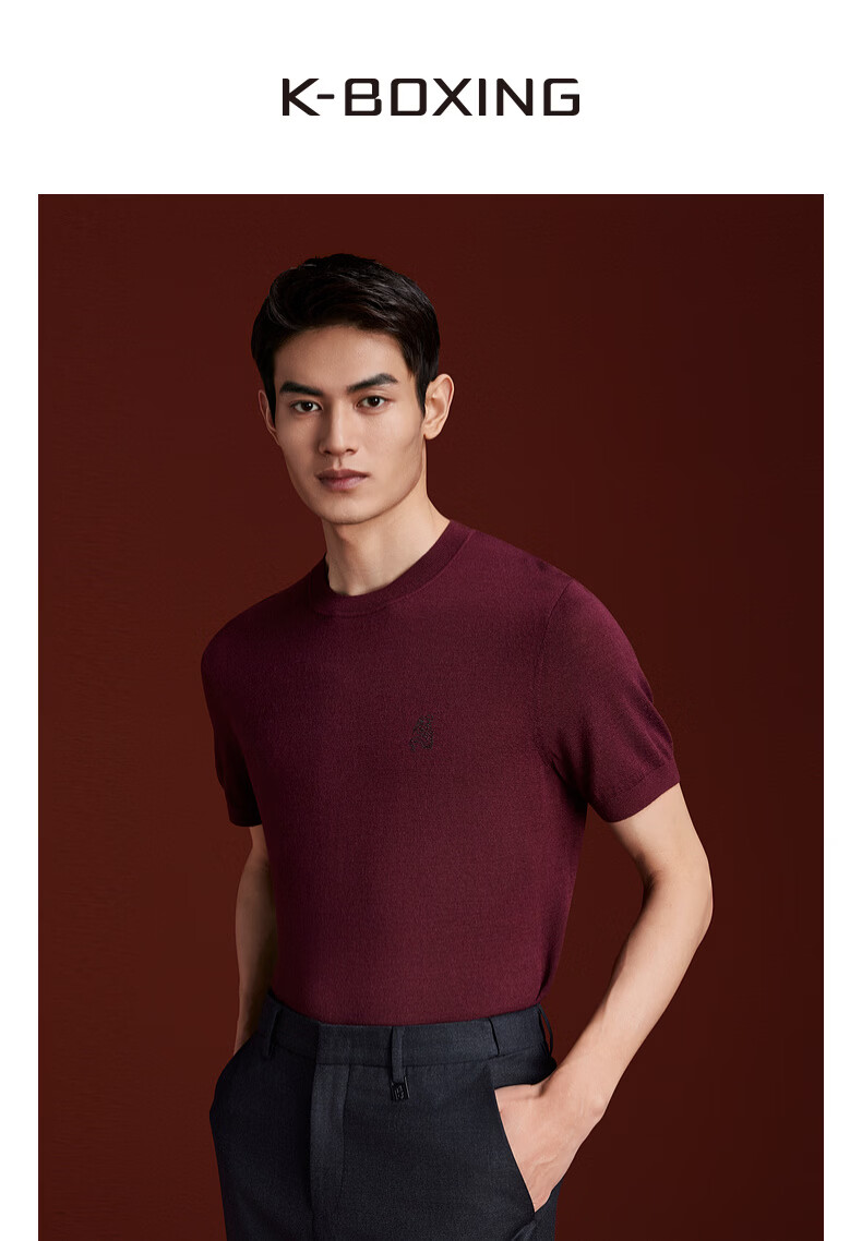 K-Boxing Men's Spring Fashion Casual High-End Wool Blended Knitted Craft Sweater CTTR1730 Scarlet S