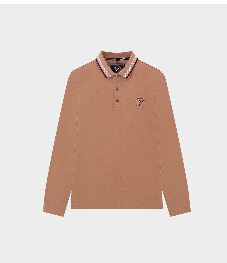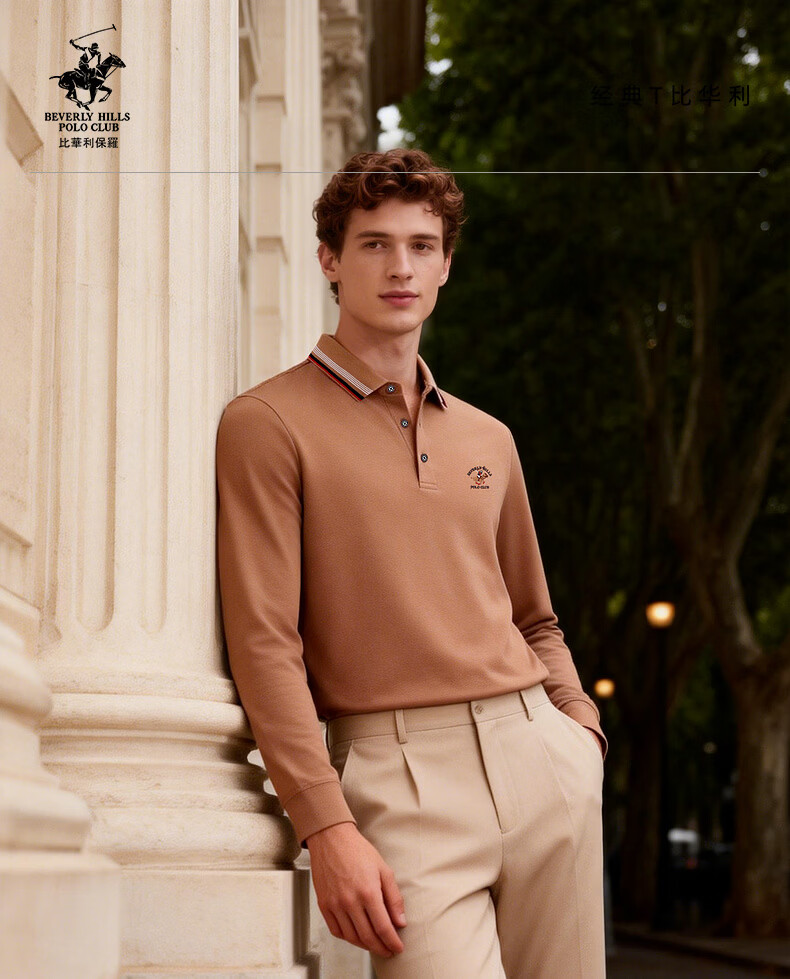 Beverly Paul 100% cotton 2026 spring new men's skin-friendly breathable long-sleeved polo shirt with inner T-shirt 19 dark khaki S
