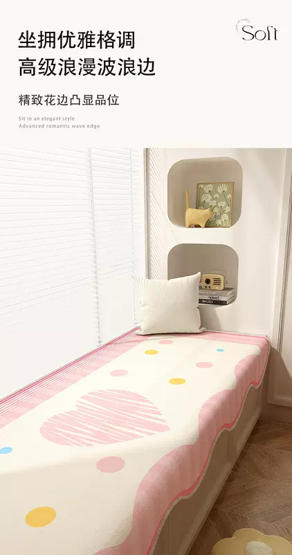 Yusen Yi Cushion main seat cushion floating on the balcony, new window sill cushion, universal for all seasons, princess style, irregular sleeping window, loving girl, polka dot stripes, special-shaped - Chenille special-shaped bay window cushion, universal for all seasons, 80x160cm (waterproof and anti-fouling)