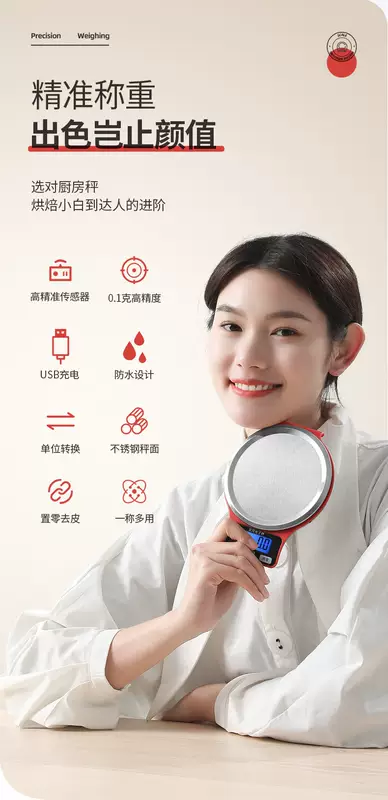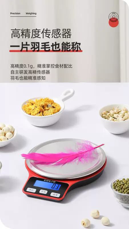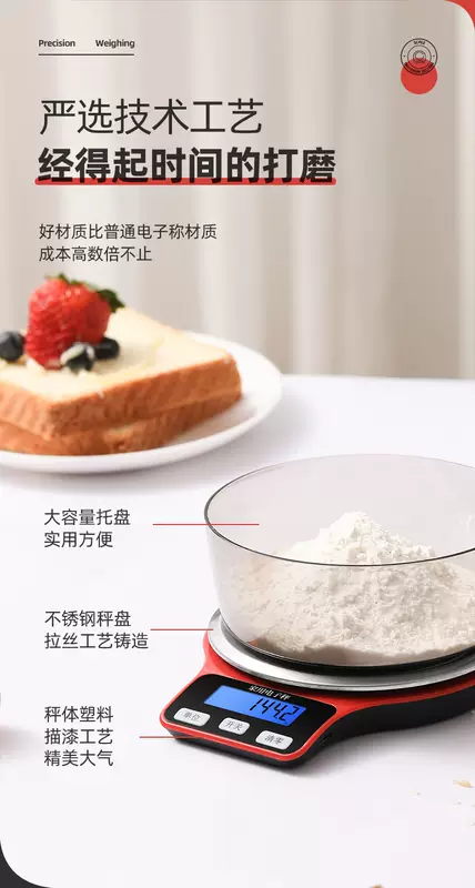 Yusenyi small cooking scale high-precision food grams coffee roasting scale balance scale household gram weight accurate three-use model (5kg0.1g) free scale bowl-charging cable cable-battery 6 luxury gift