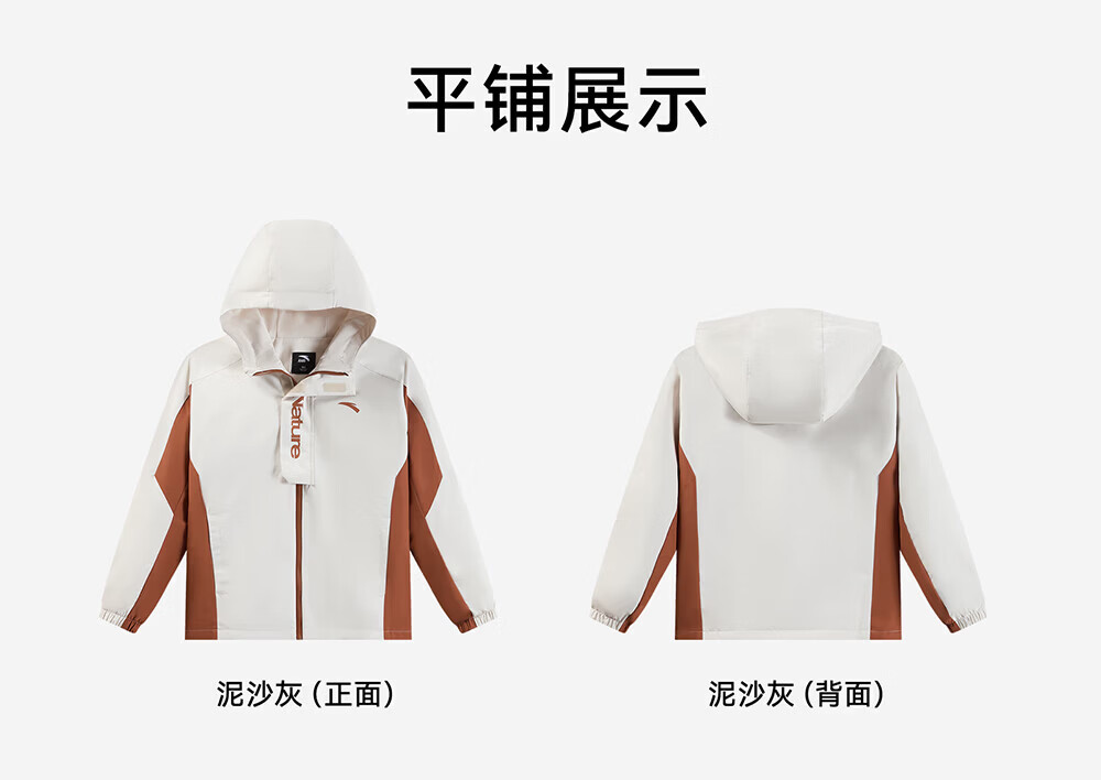 ANTA Children's Jacket Men's Big Children's Clothing 2026 Spring New Hooded Mercerized Velvet Water-Repellent Trendy Woven Thick Jacket Silt Gray-1 130