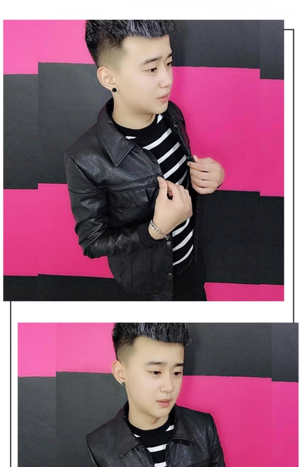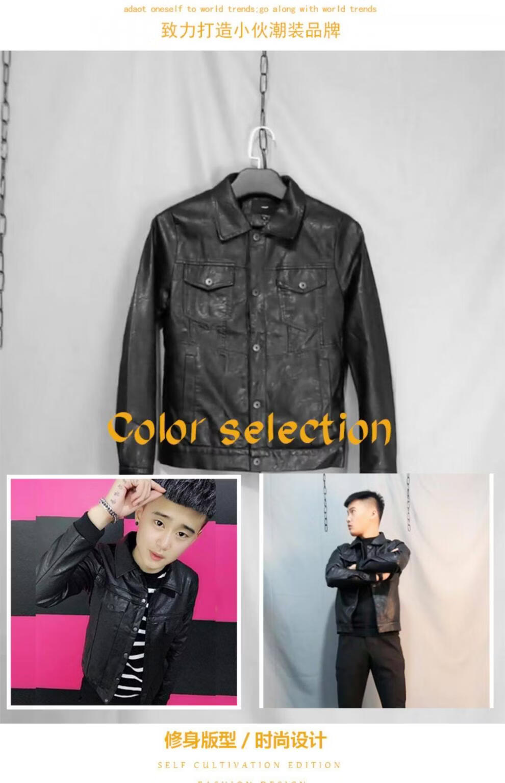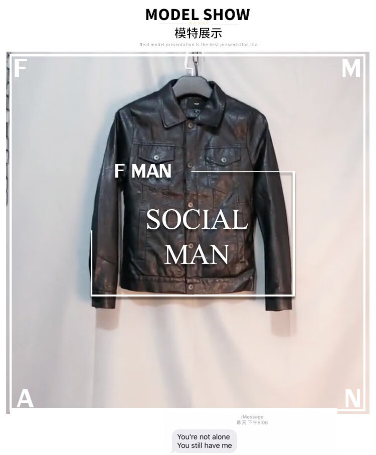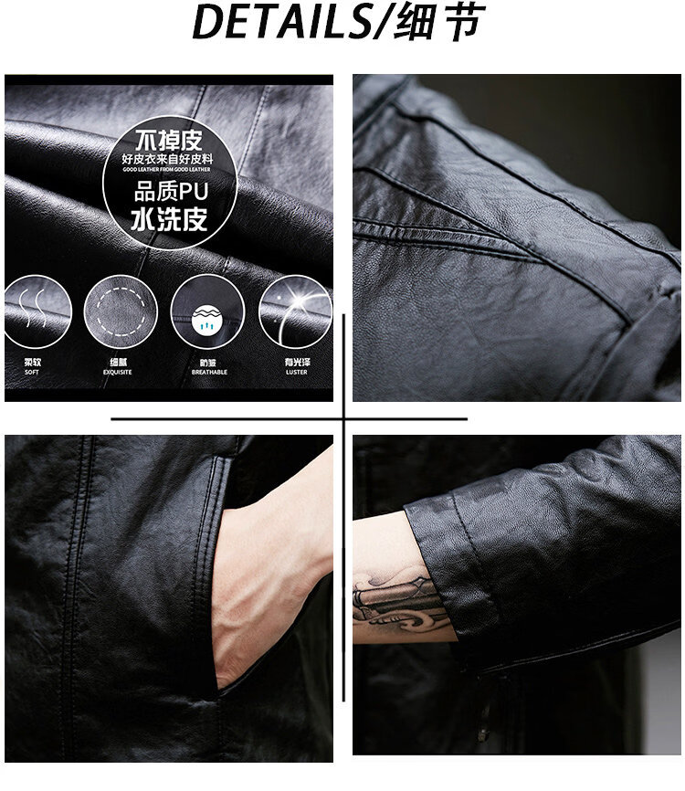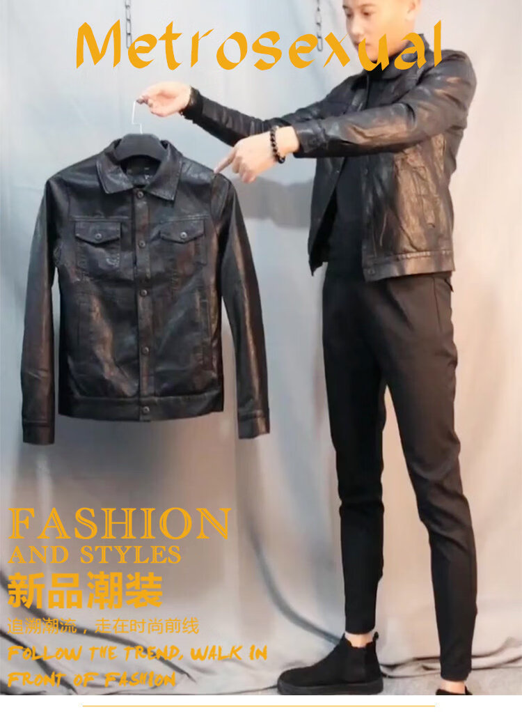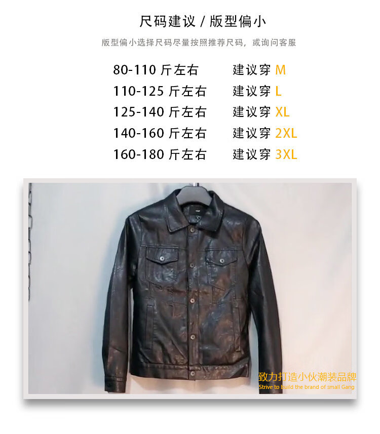 SEPTWOLVES short handsome trendy fashion thickened motorcycle Pu leather jacket social spirit young people slim street lapel clip black plus velvet M 85-110Jin Jin is equal to 0.5 kg