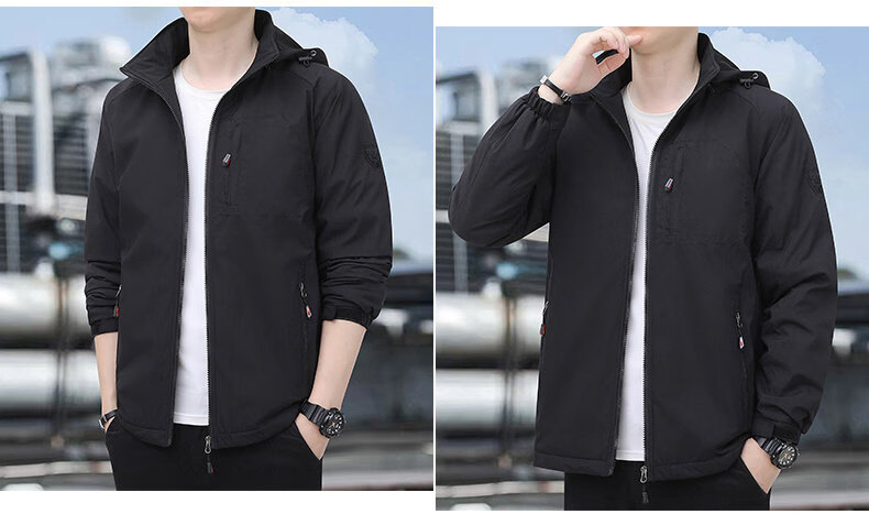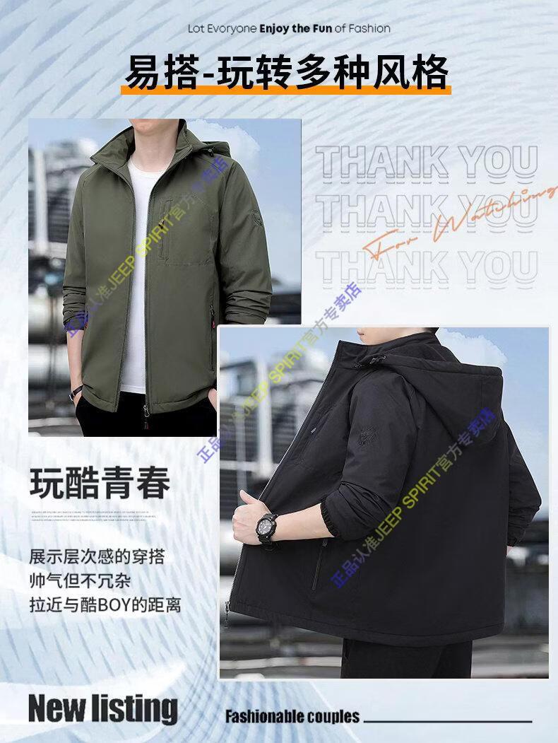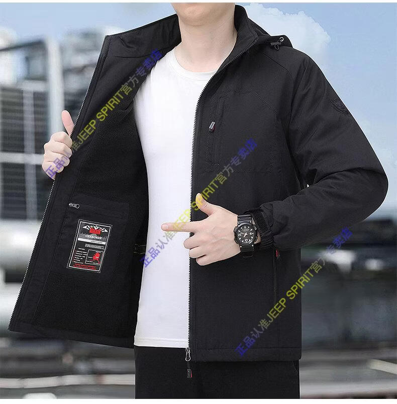 JEEP SPIRIT Jeep Men's Jacket Spring and Autumn Trendy Fashion Casual Loose Large Size Windproof Top Jacket Black M