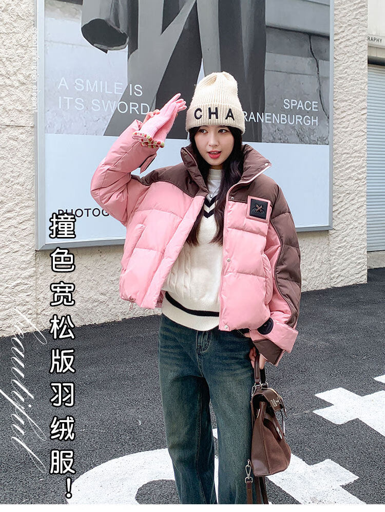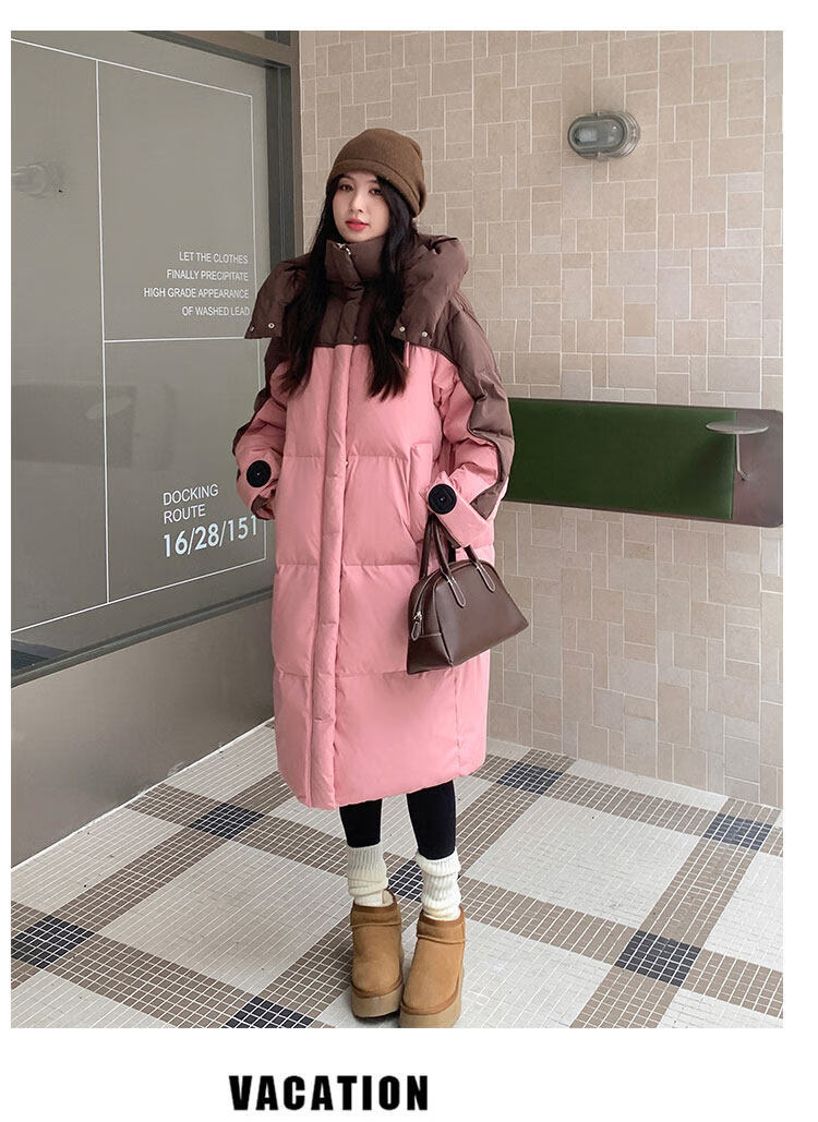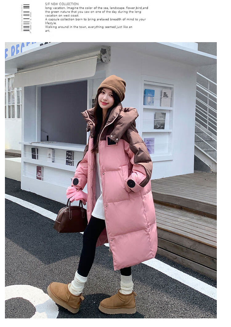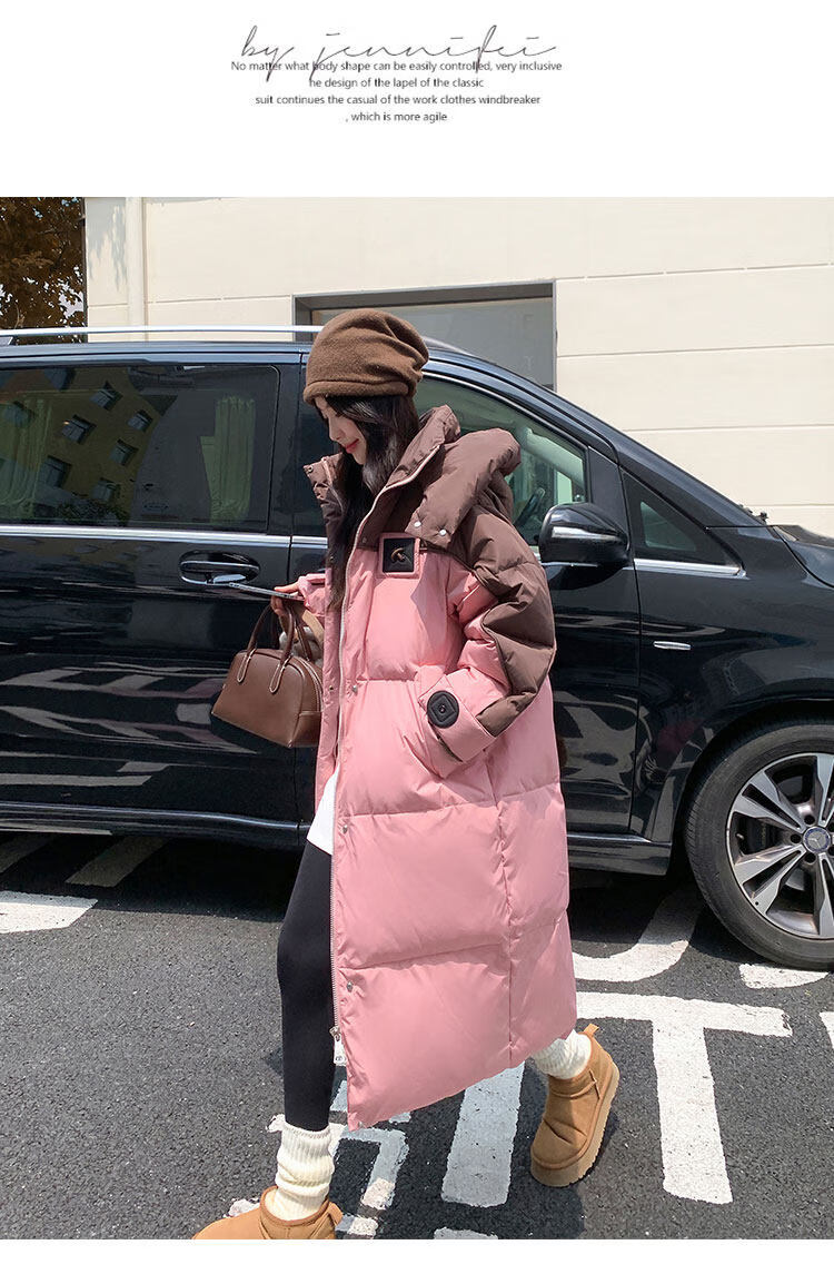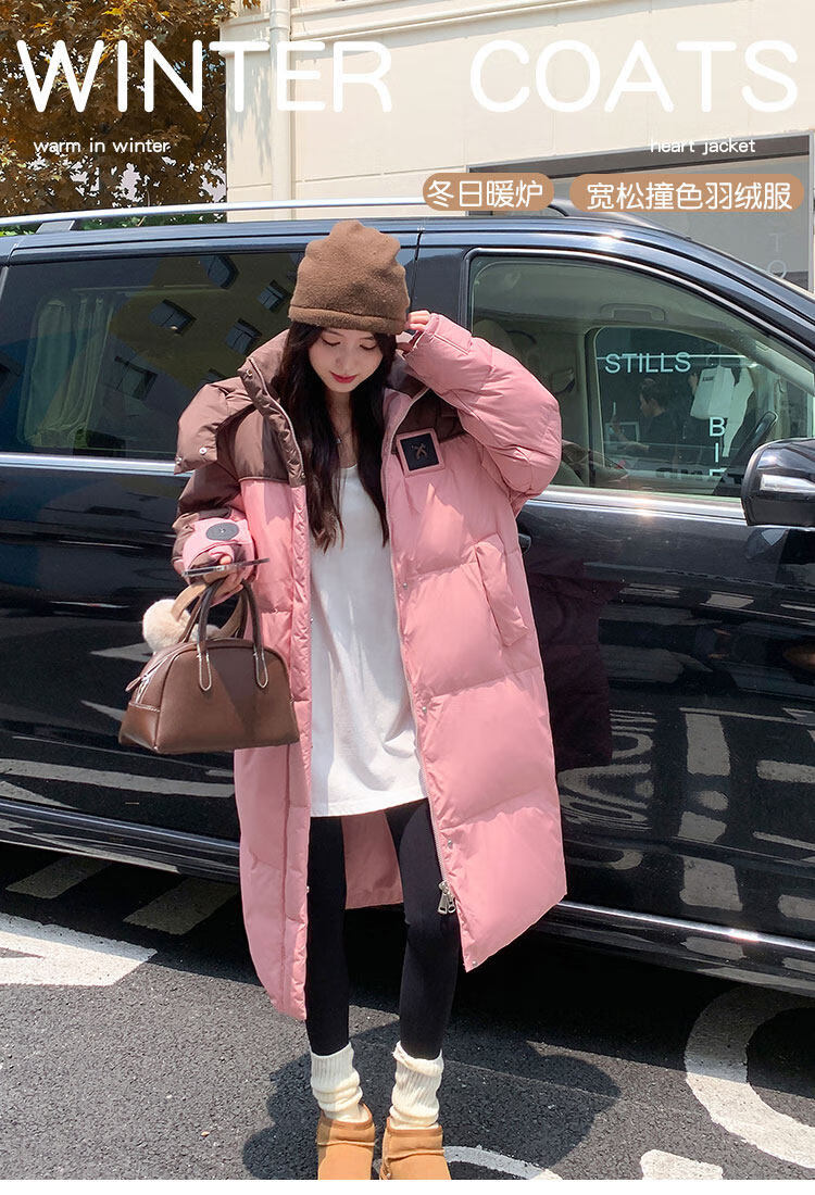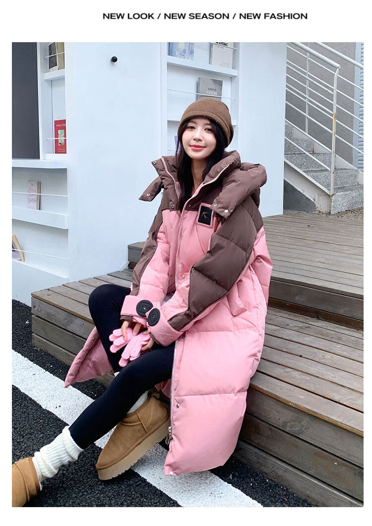 ROMON goose down jacket women's mid-length 2026 new winter high-end big-name Korean version of the extreme cold thickened jacket coffee color + pink counter synchronization L 125-140Jin Jin equals 0.5 kg