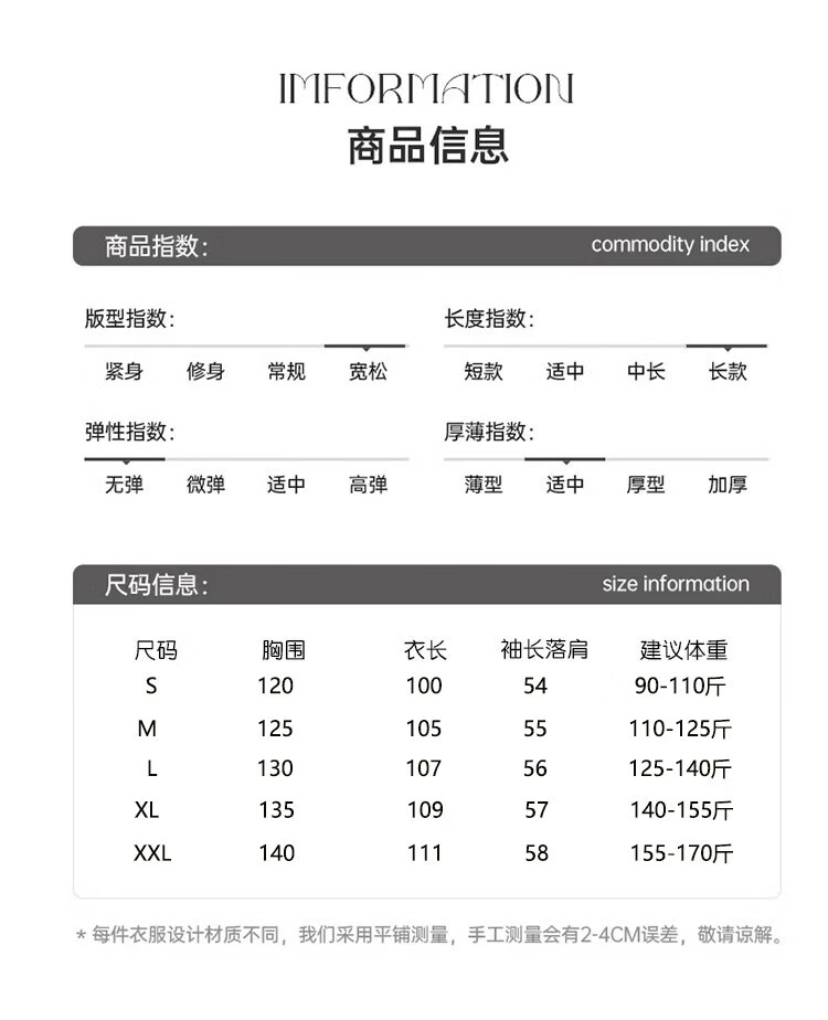 China (cm) 160-165/84-86 165-170 / 88-90 167-172 / 92-96 168-173 / 98-102 170-176 / 106-110