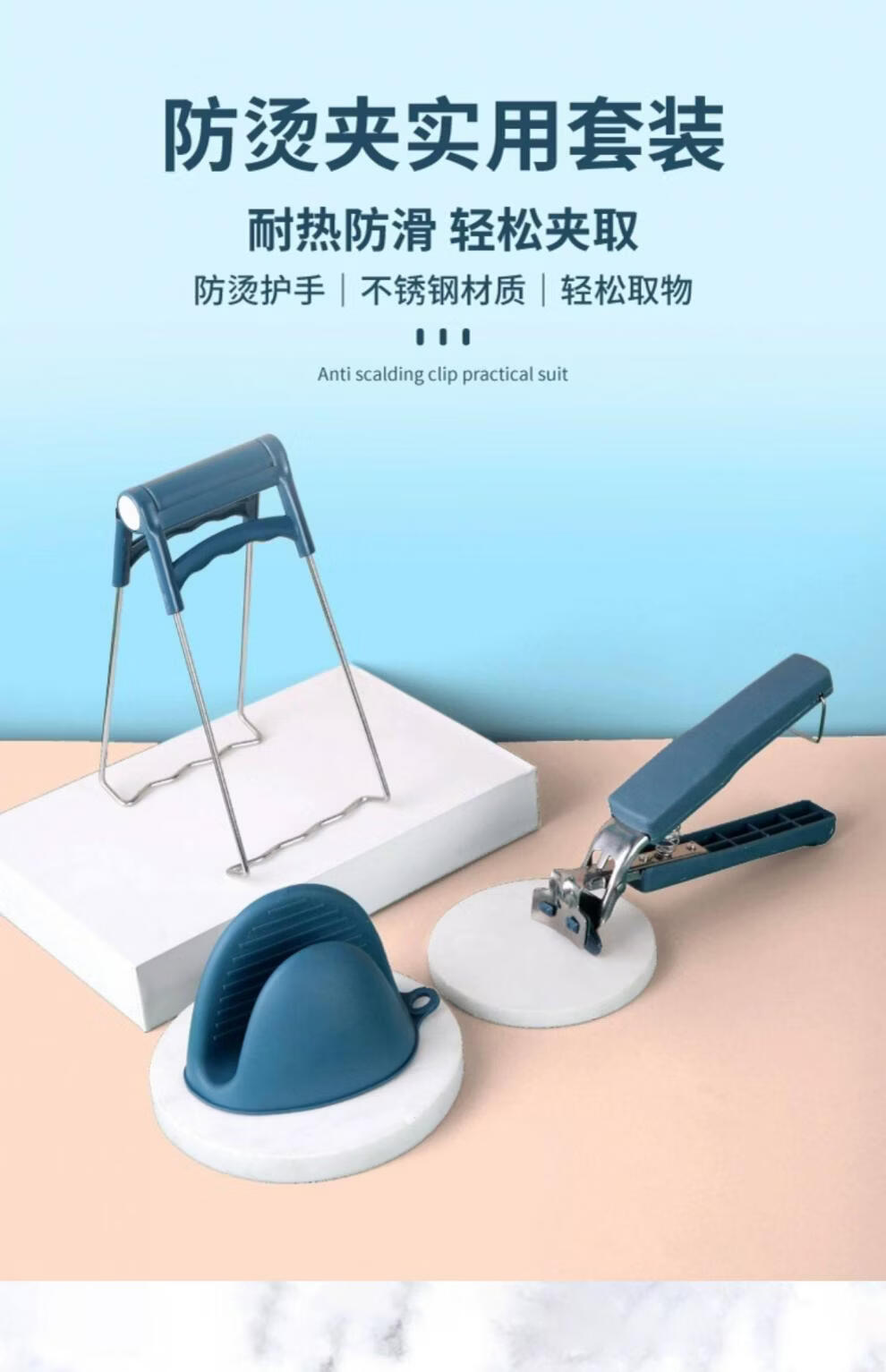 Tuojin Anti-scalding Bowl Clamp Kitchen Artifact Anti-Slip Plate Picking and Steaming Vegetable Clamp Silicone Anti-scalding 4-piece Set Bowl Clamp + Plate Picking + Gloves