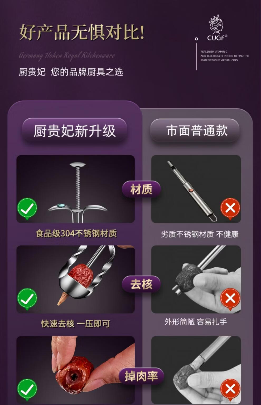 He Jiagong's core removal artifact red date corer household 304 stainless steel multi-functional jujube milk jujube core removal tool standard 304 stainless steel red date corer