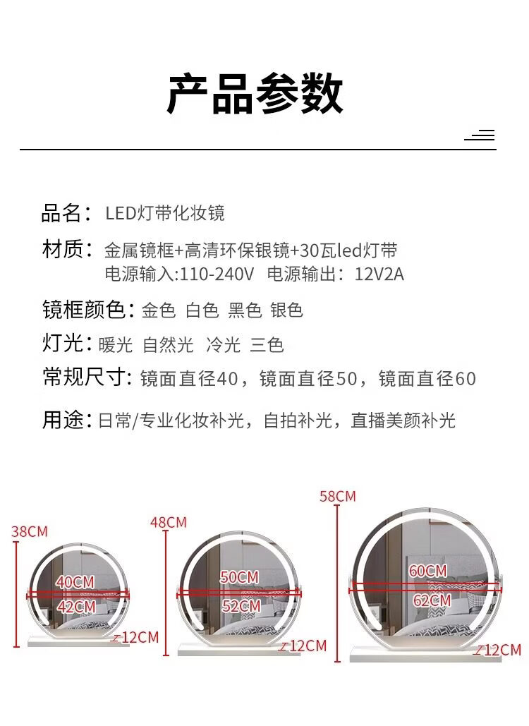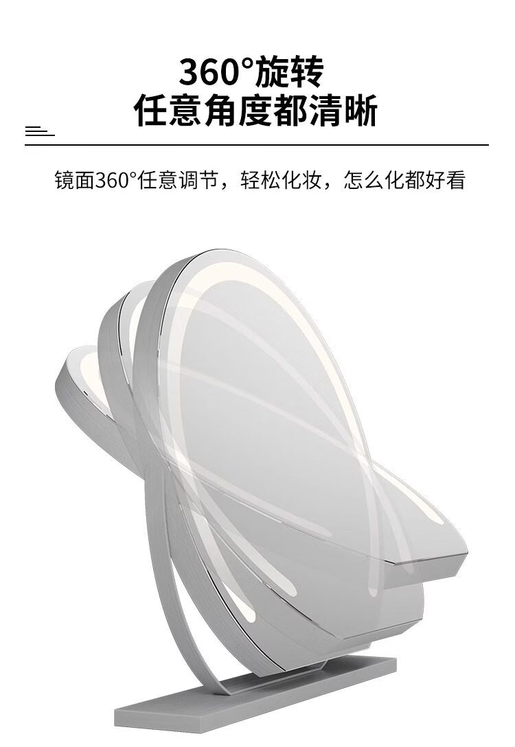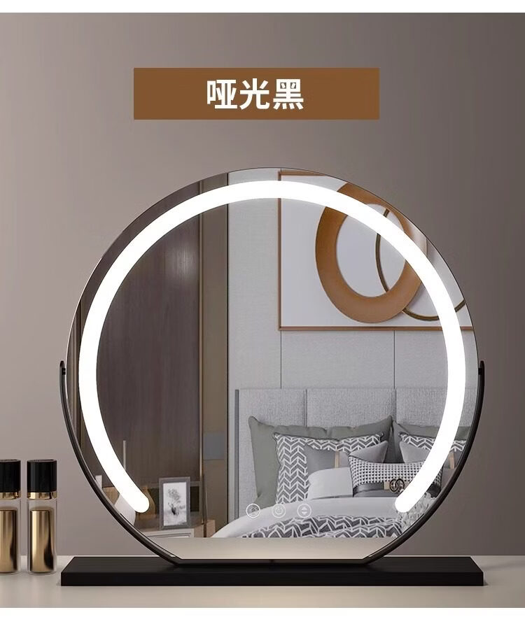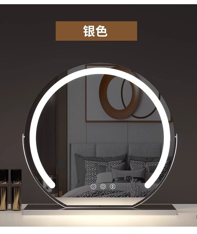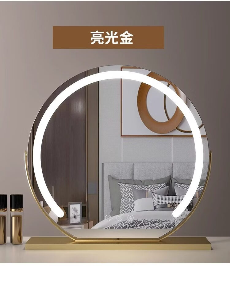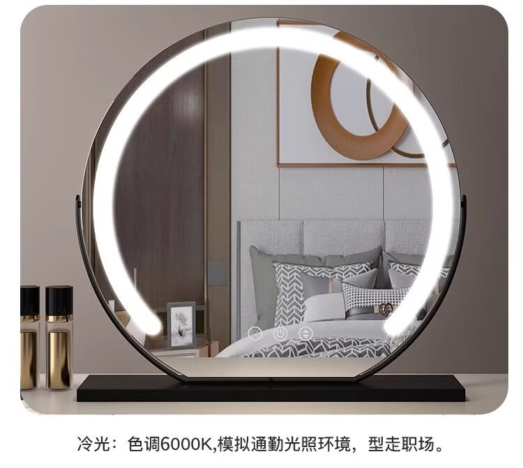 German high-definition LED vanity mirror with light vanity mirror desktop smart home simple master bedroom Internet celebrity white 40 diameter (plug-in) rotating model_ upgraded voice control + touch dual-use switch