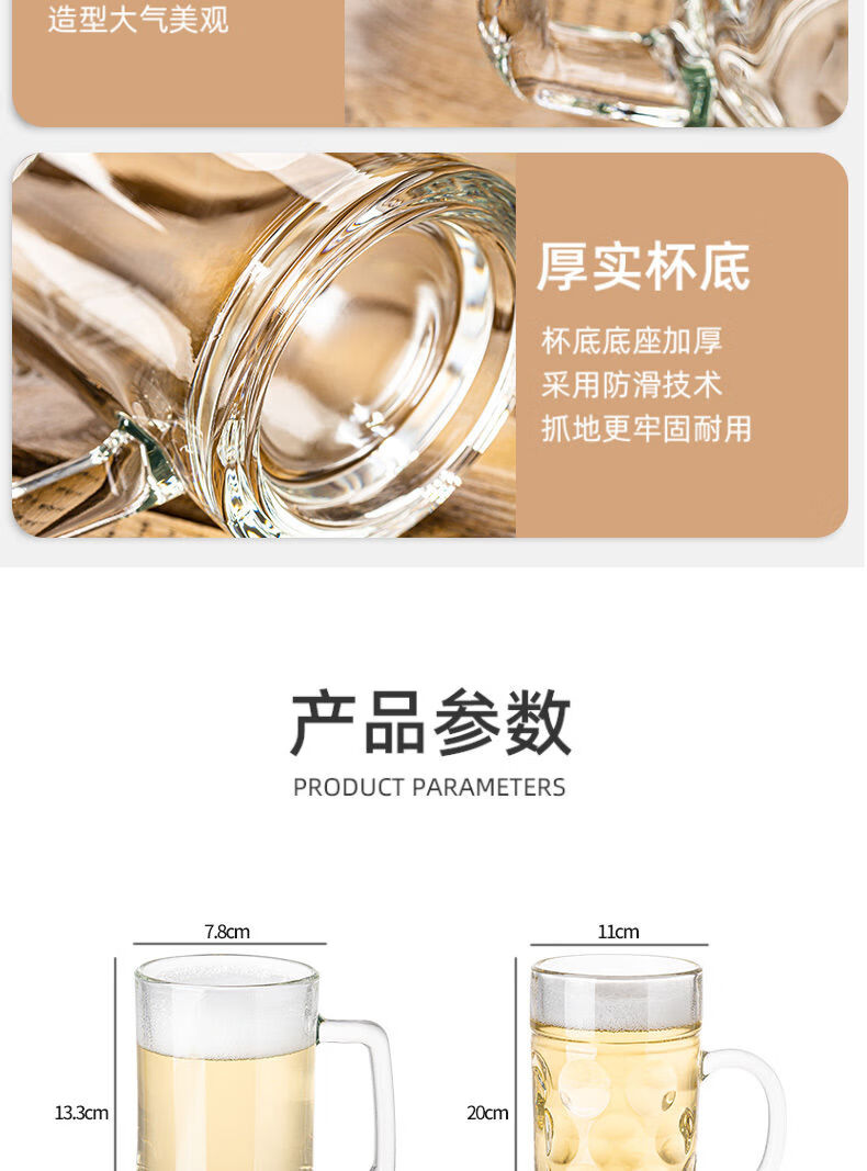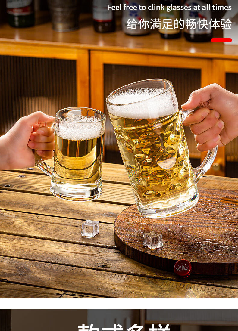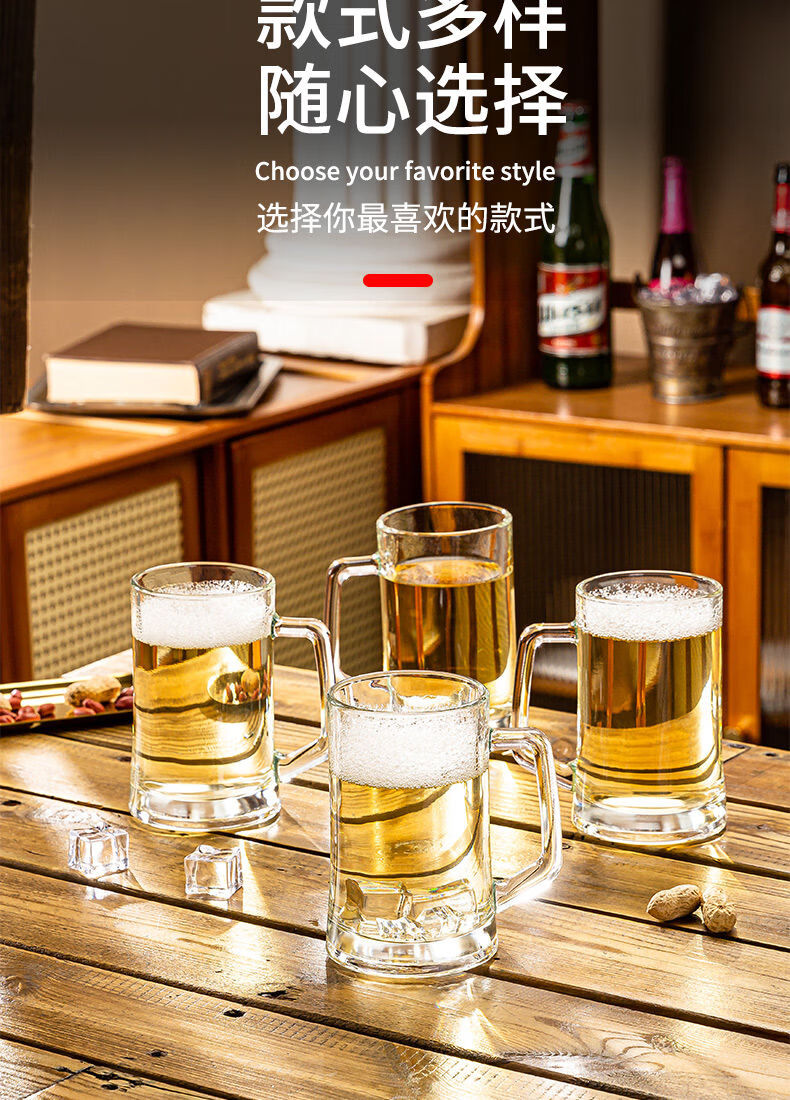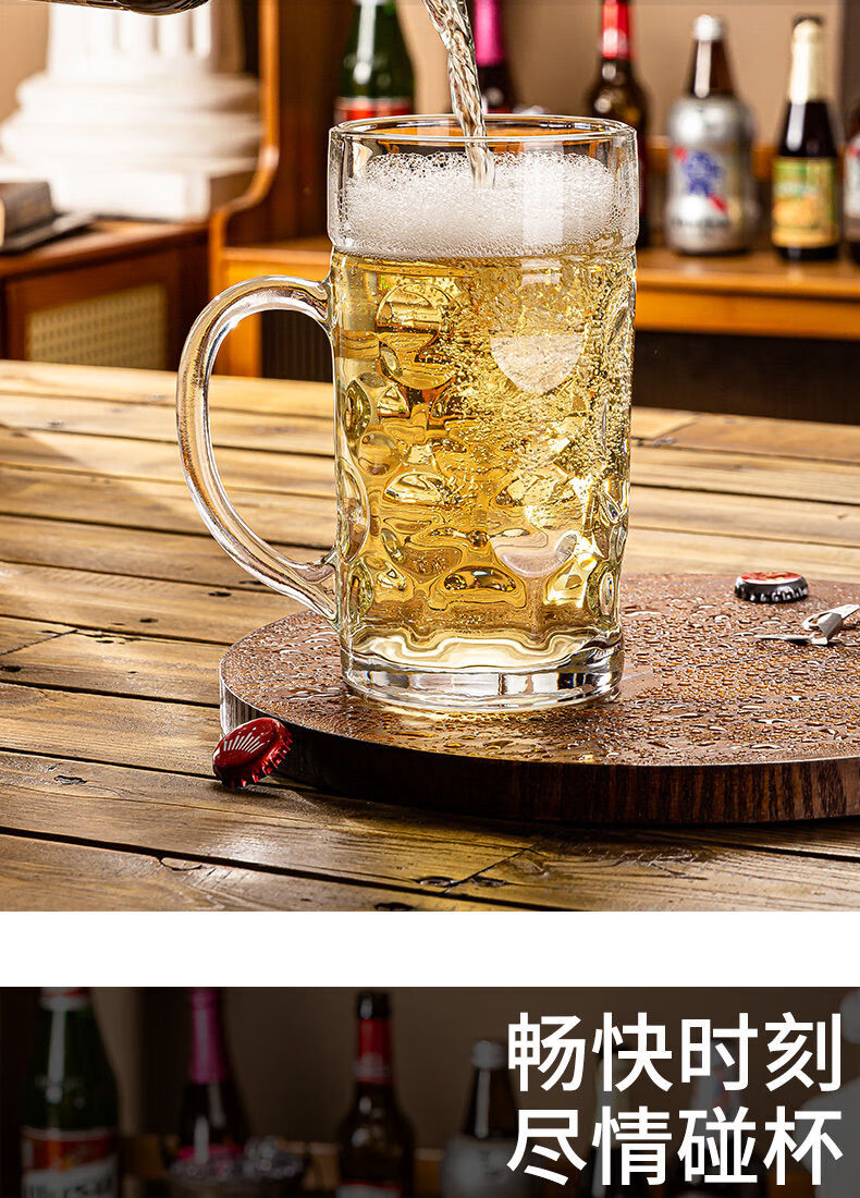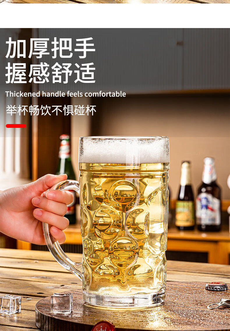 Fantasy glass beer cup, large-capacity draft beer cup, craft cup, juice drink cup, tea cup, drinking water cup with handle, 350ML Haite cup, buy three, get three free