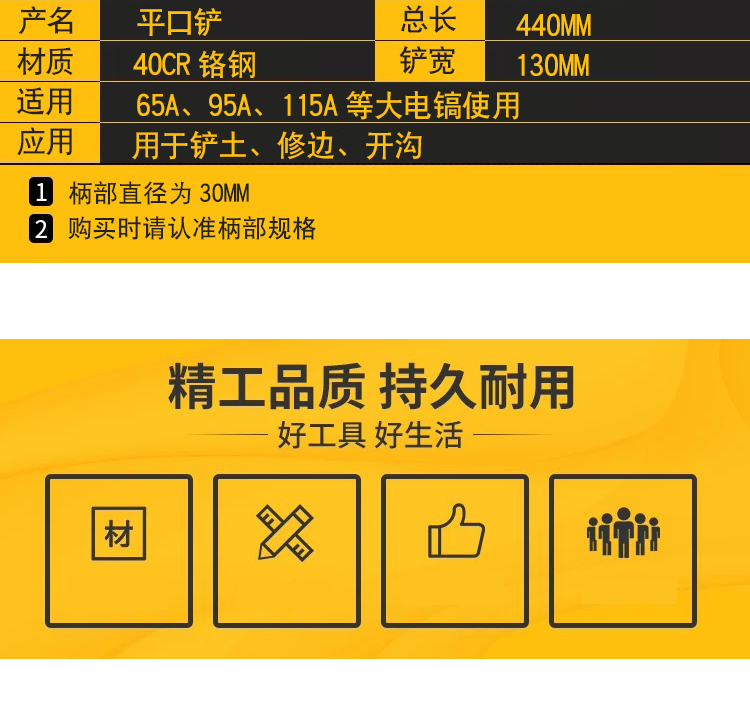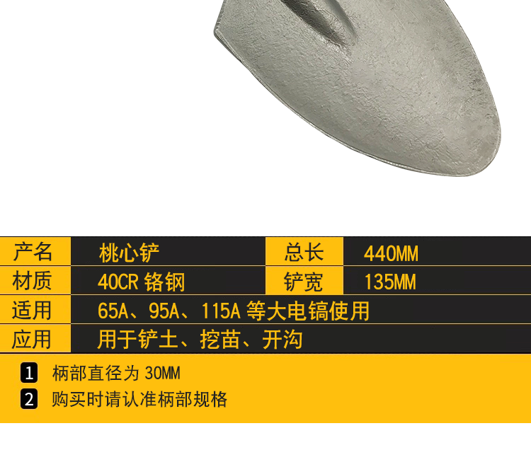 65A large electric pick, widened shovel head, generous square shovel, thickened 95 electric pick, chisel, concrete digging shovel, tree peach heart shovel, large electric pick, tree lifting shovel