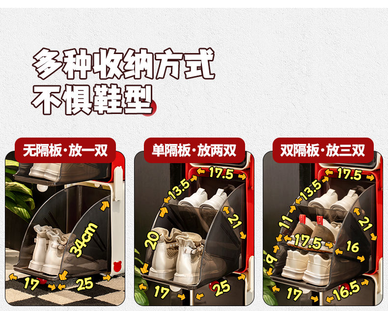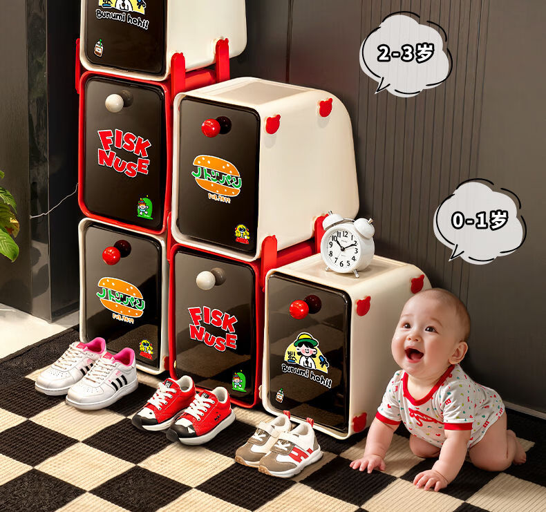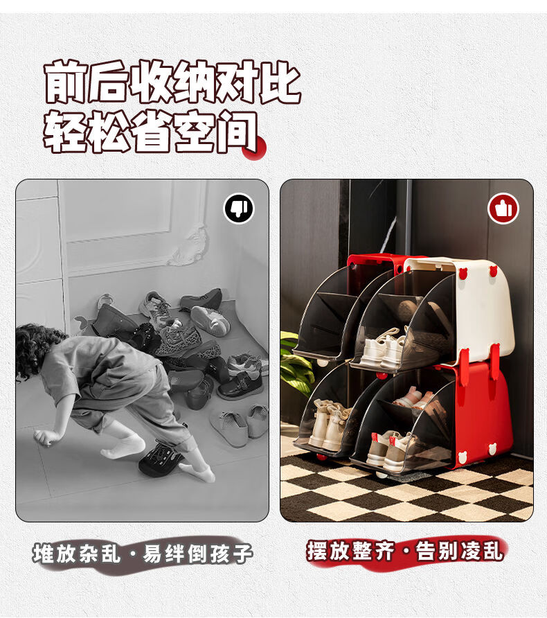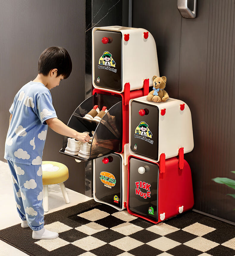 Fantasy Shoe Rack Shoe Storage Storage Shoe Box Layered Children's Shoe Storage Box Cream White + Cinnabar Red + Cream White + Children's Shoe Box Pattern Style