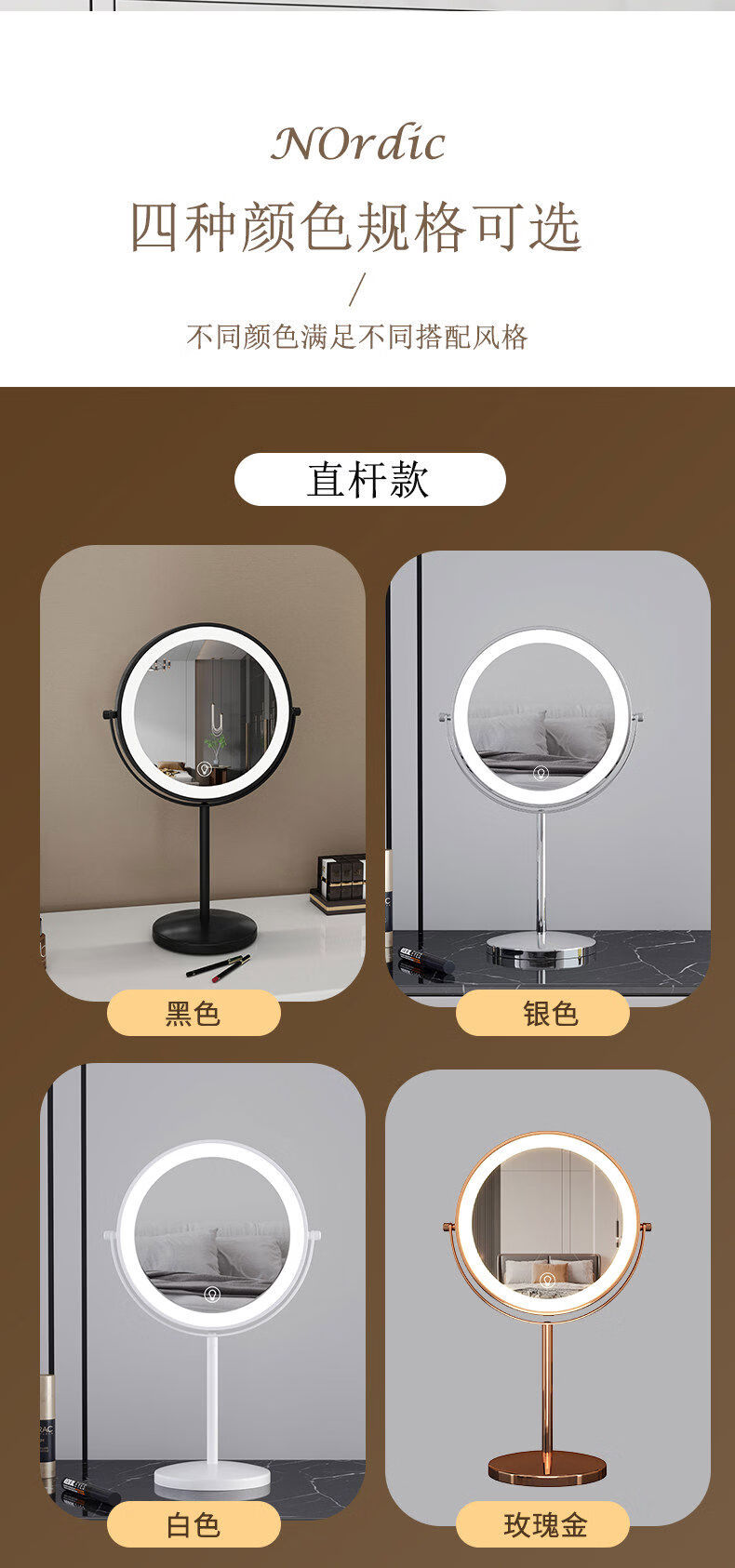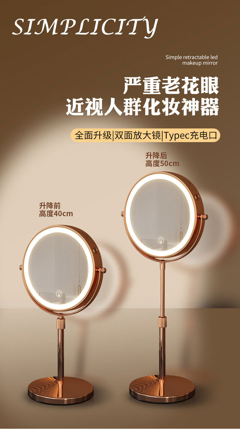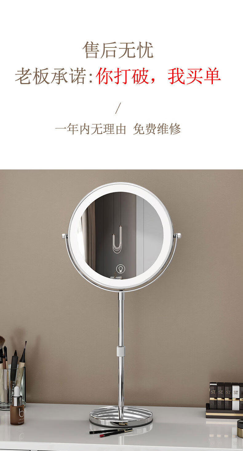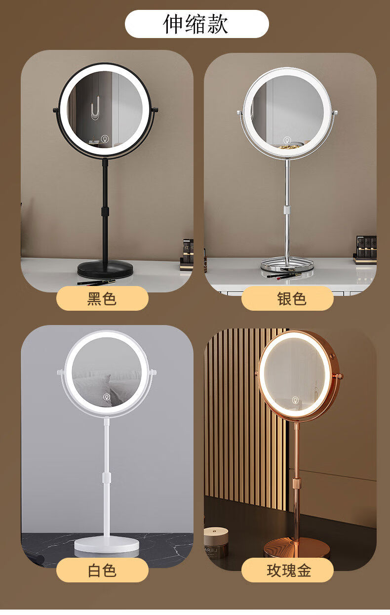 Reading glasses, 5x, 10x magnification, liftable telescopic mirror with light, double-sided magnifying makeup mirror, foldable and portable, 9-inch white straight pole, 3x front, 5x back