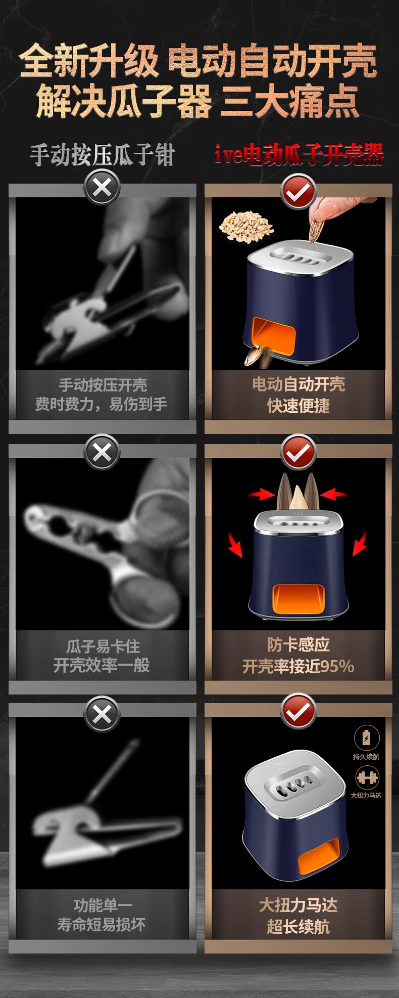 JM German quality melon seed peeling artifact, automatic melon seed shelling machine, lazy melon seed machine, electric melon seed peeling machine, elegant white rechargeable model - porous melon seed machine