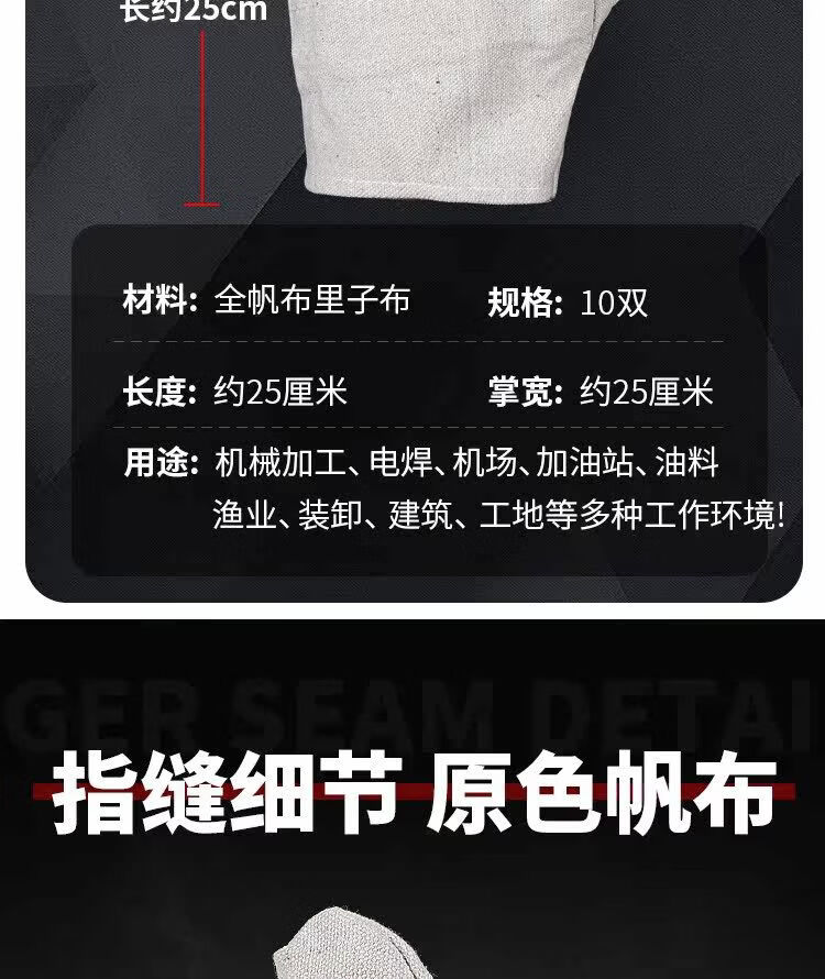 Baiquan canvas gloves labor protection work double-lined 24-line industrial machinery welding site men's protection one-size-fits-all 24-line canvas gloves 10 pairs