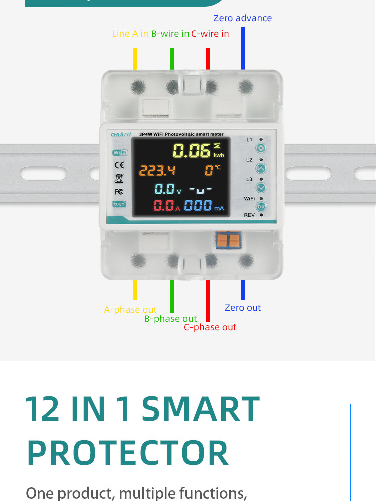 TPT three-phase four-wire TuyaWiFi smart switch meter protector remote control without leakage