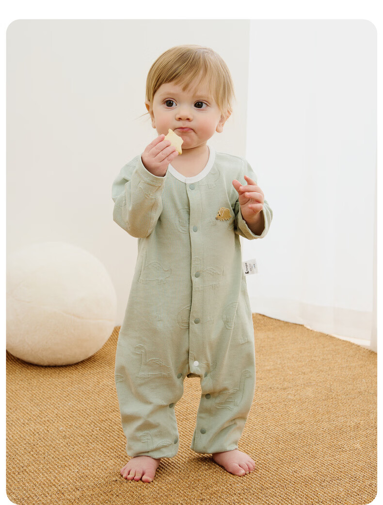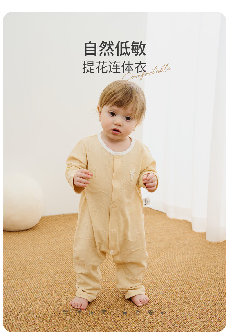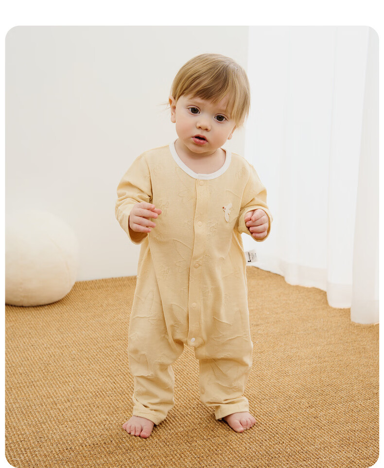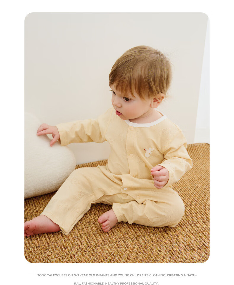 Tongtai (TONGTAI) baby jumpsuit summer thin pure cotton newborn cute clothes baby outing jacquard rompers apricot 59cm