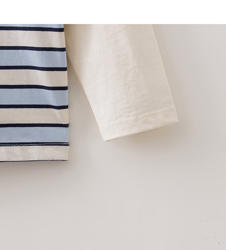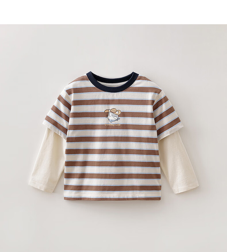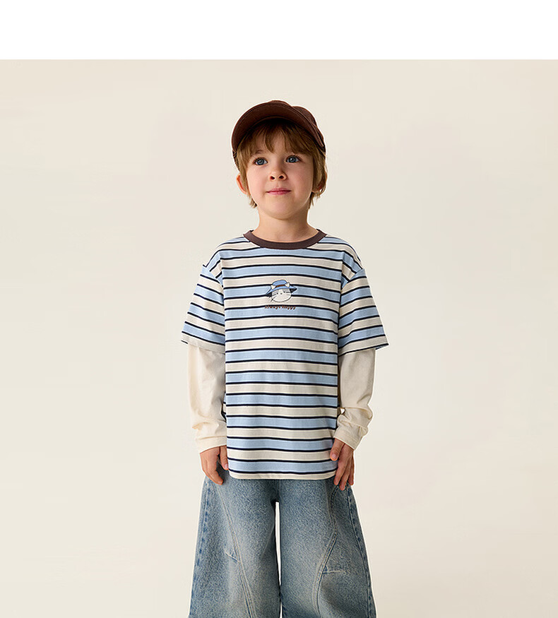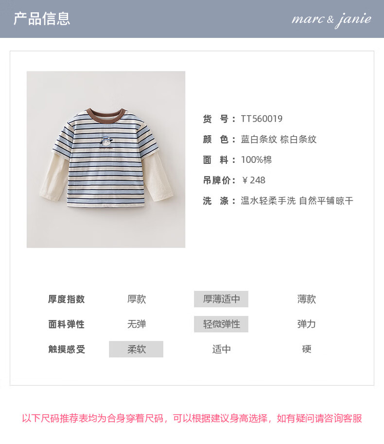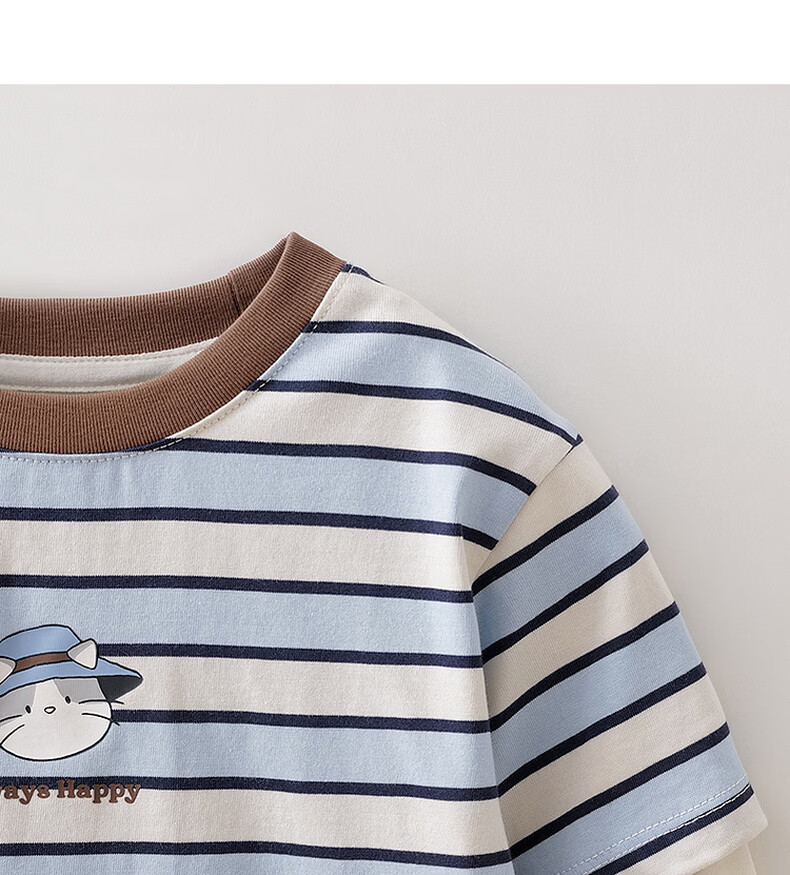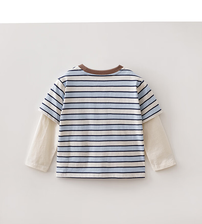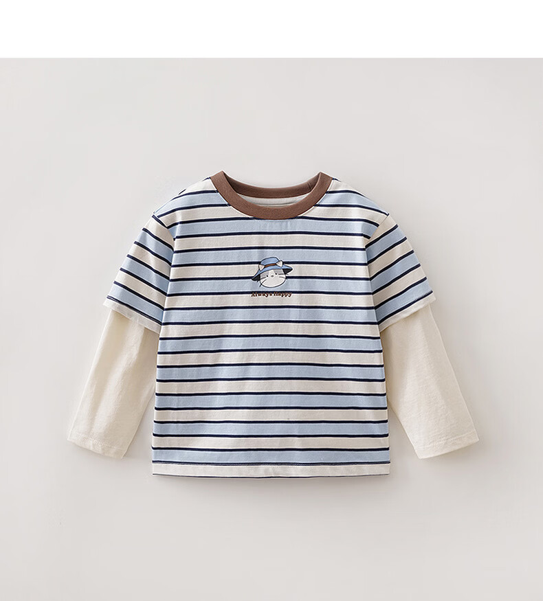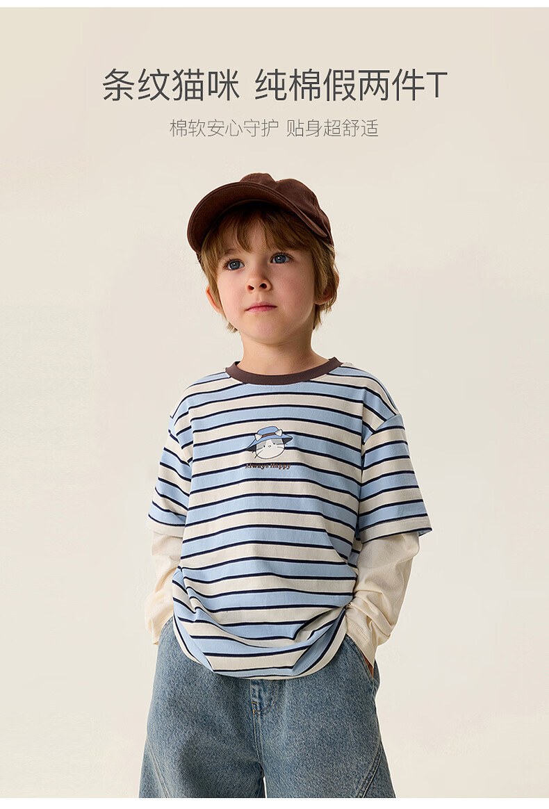 MARC&JANIE Mark Jenny striped cat boys pure cotton fake two-piece T-shirt baby tops 2026 spring new style 560019 blue and white stripes 90 cm (recommended height 81-90cm)