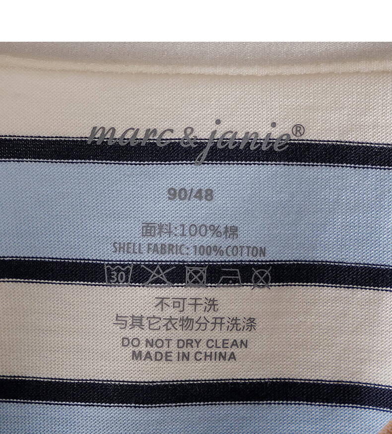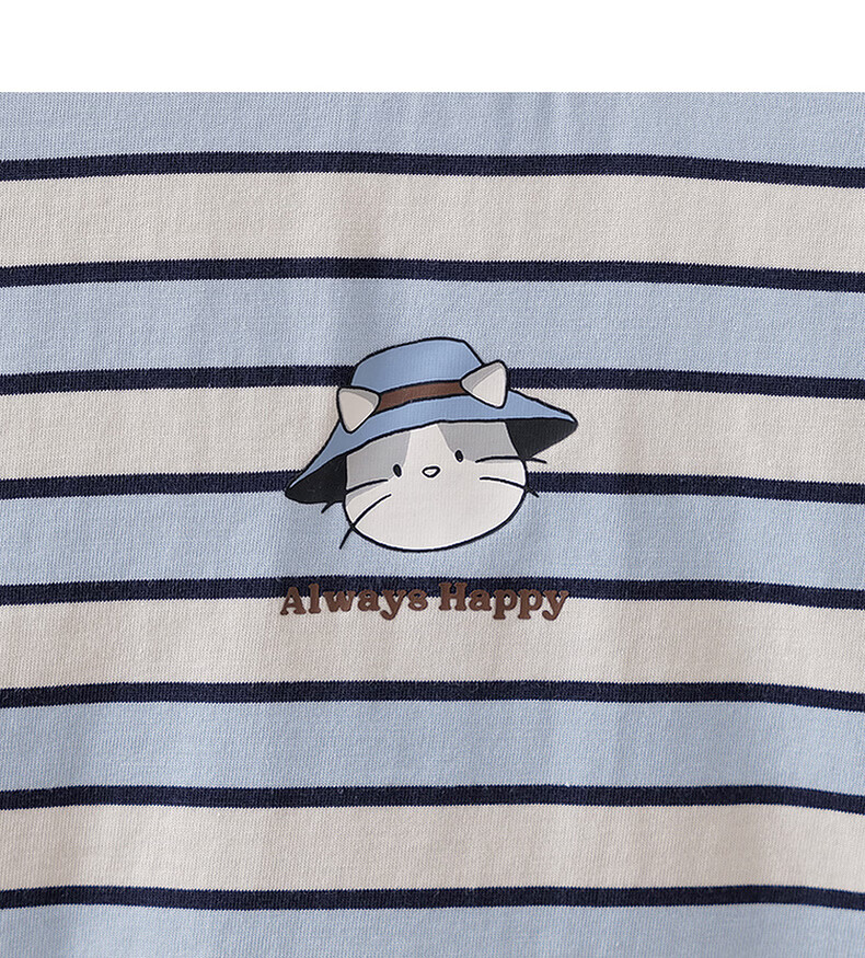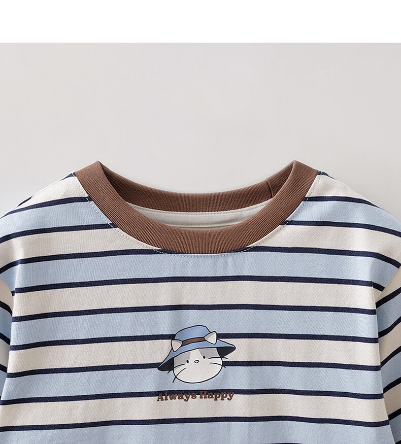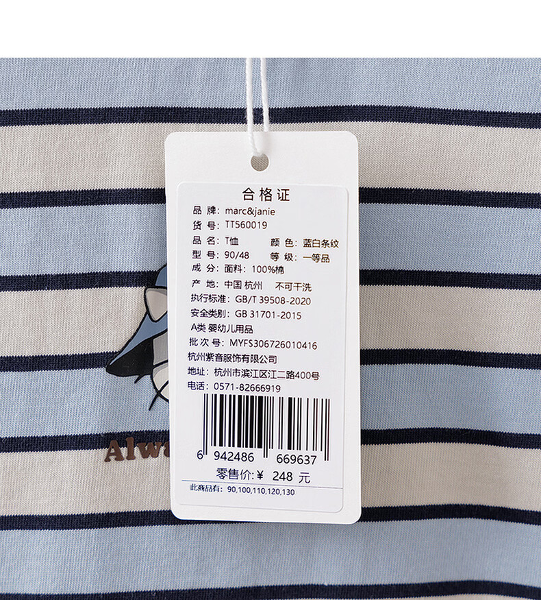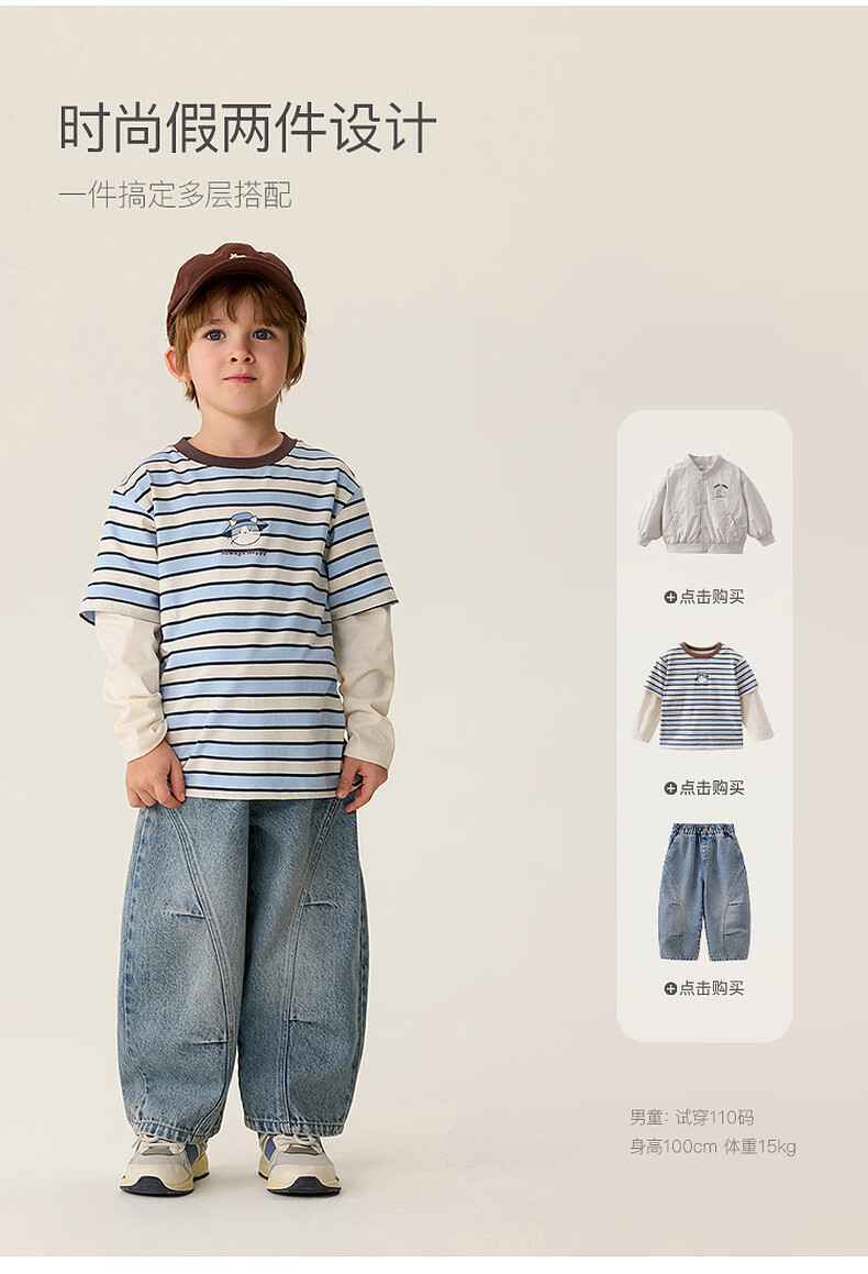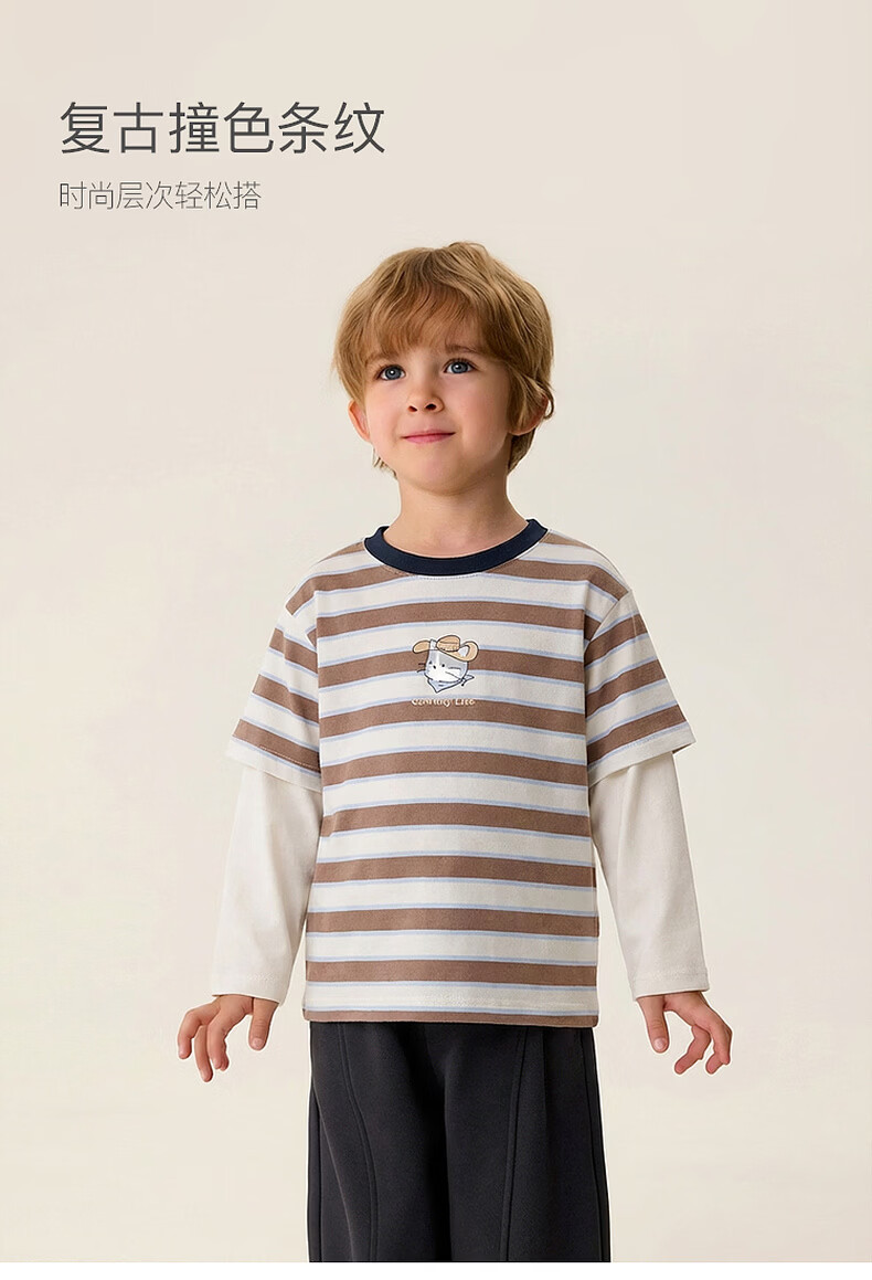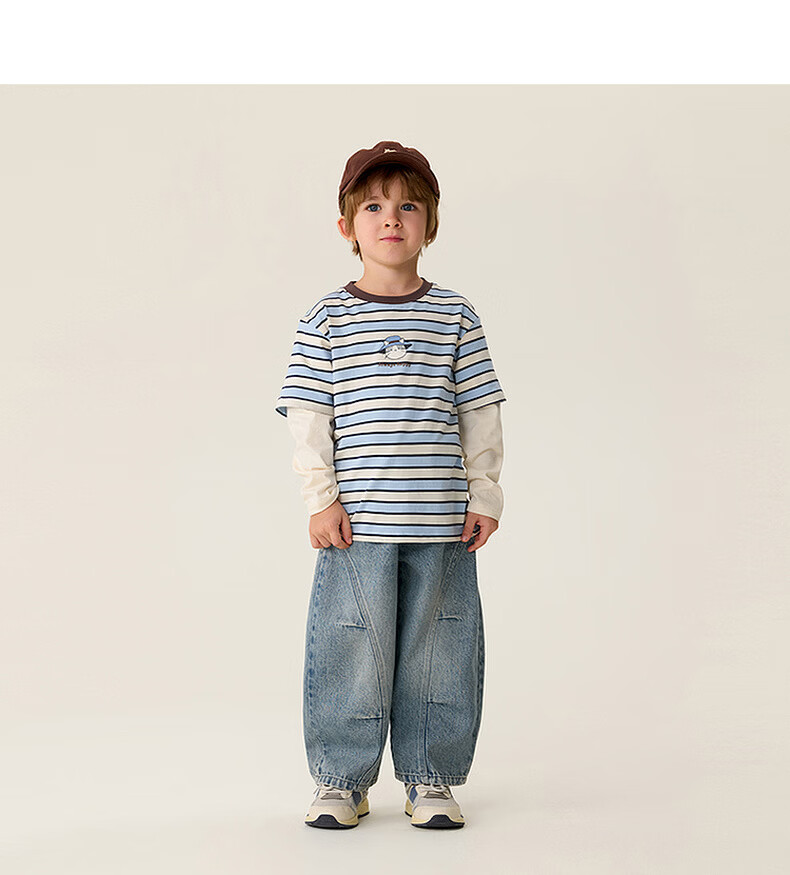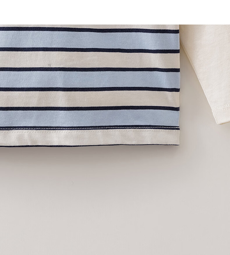 MARC&JANIE Mark Jenny striped cat boys pure cotton fake two-piece T-shirt baby tops 2026 spring new style 560019 blue and white stripes 90 cm (recommended height 81-90cm)