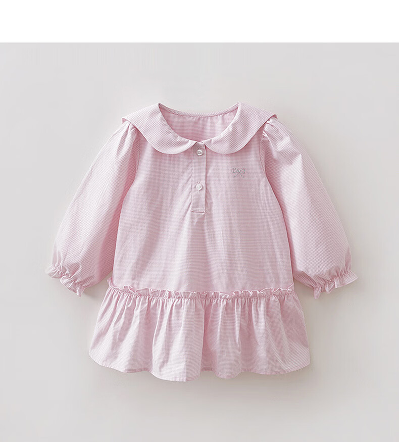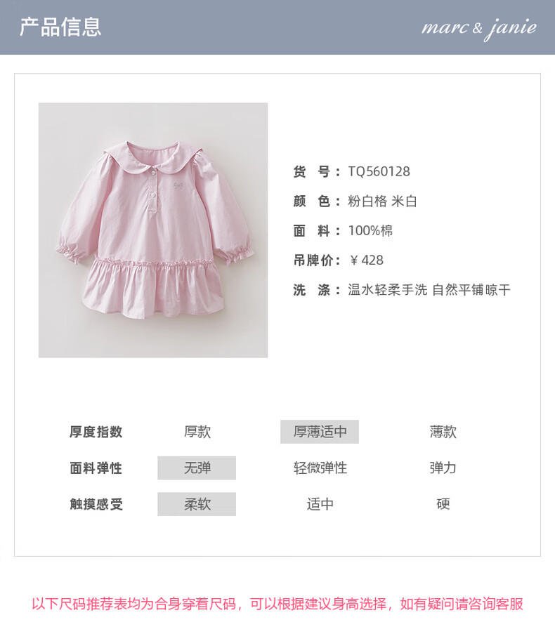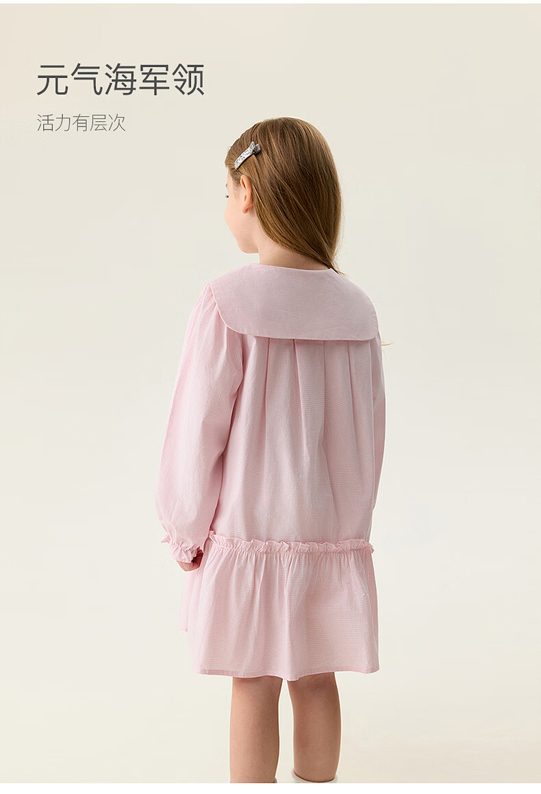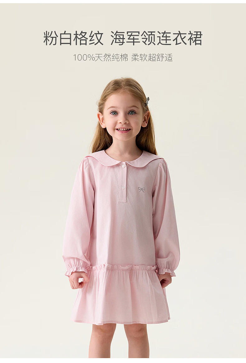 MARC&JANIE Mark Jenny pink and white plaid girls navy collar dress baby skirt 2026 spring new style 560128 pink and white plaid 90 cm (recommended height 81-90cm)