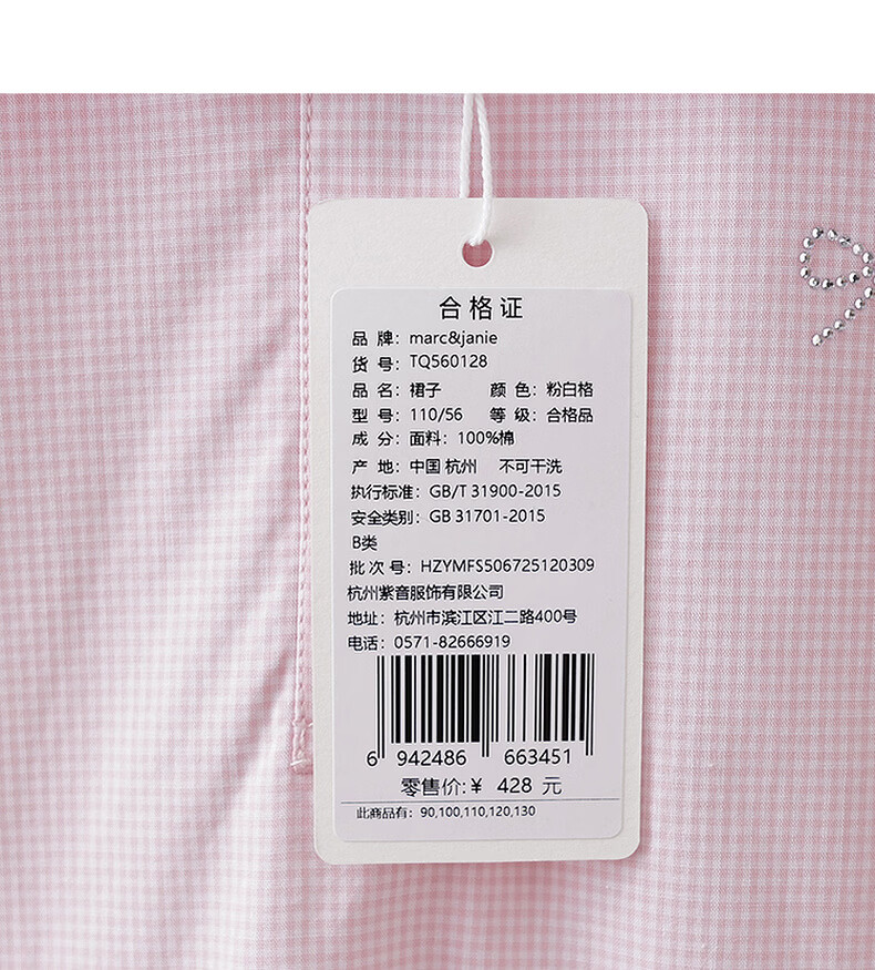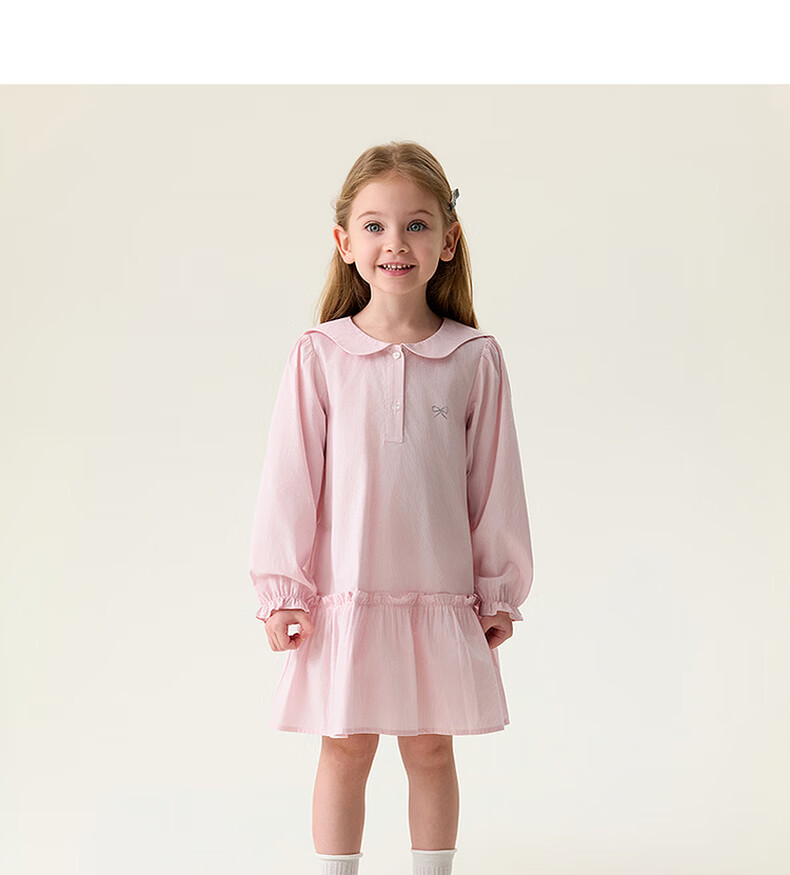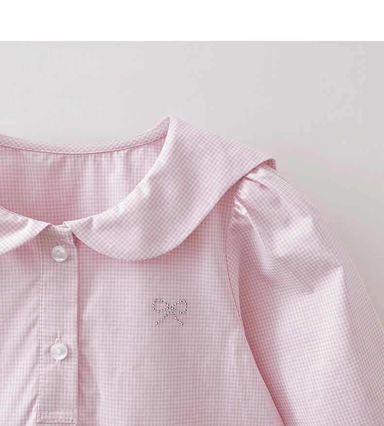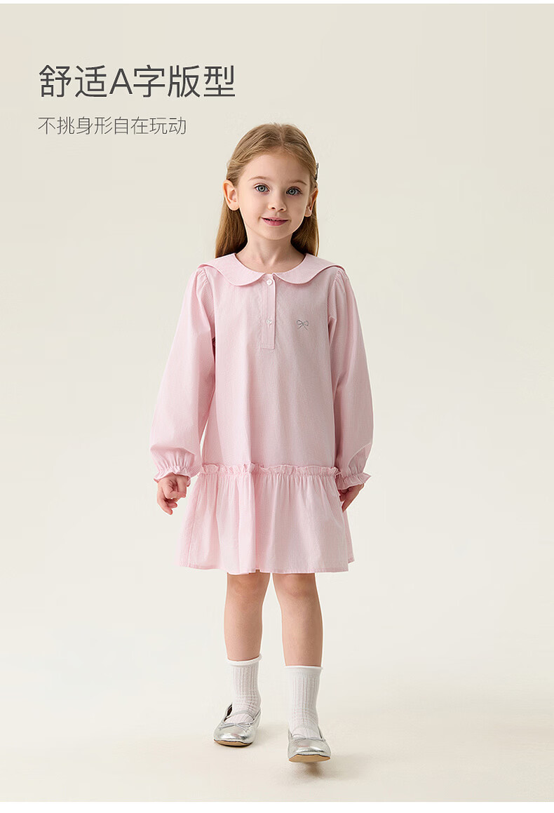 MARC&JANIE Mark Jenny pink and white plaid girls navy collar dress baby skirt 2026 spring new style 560128 pink and white plaid 90 cm (recommended height 81-90cm)