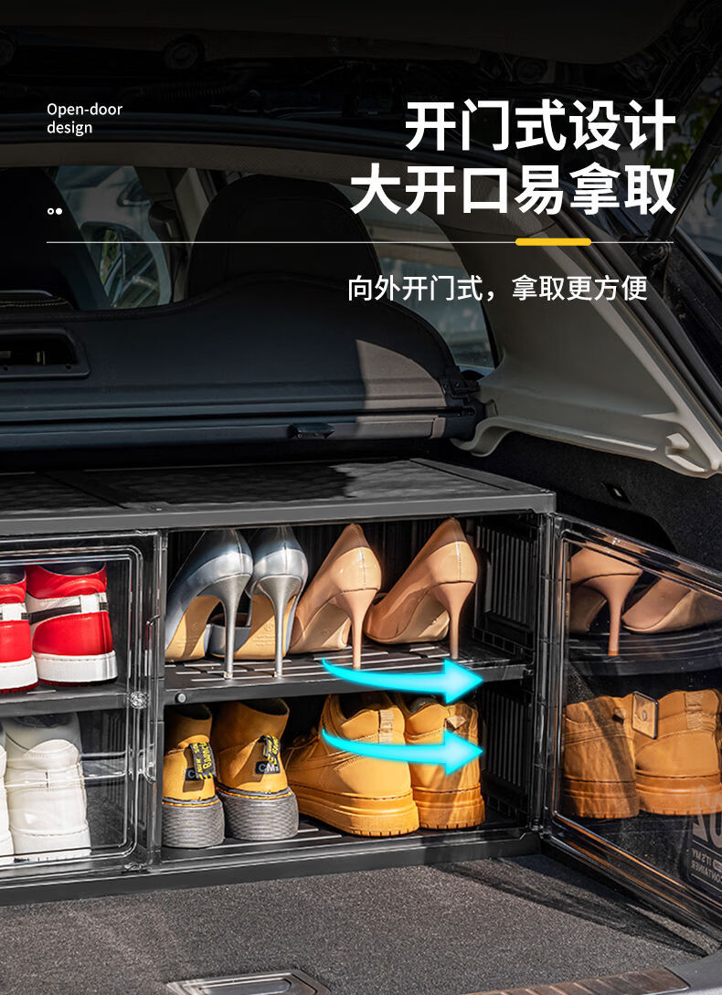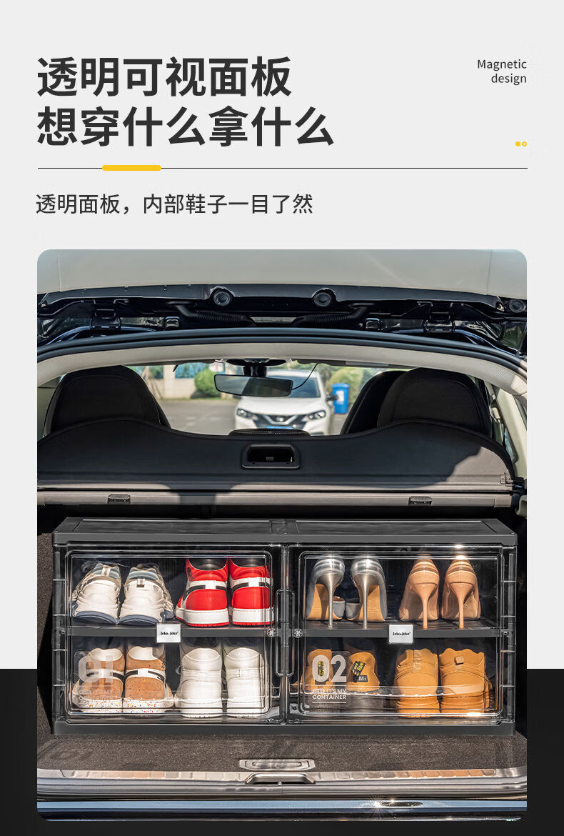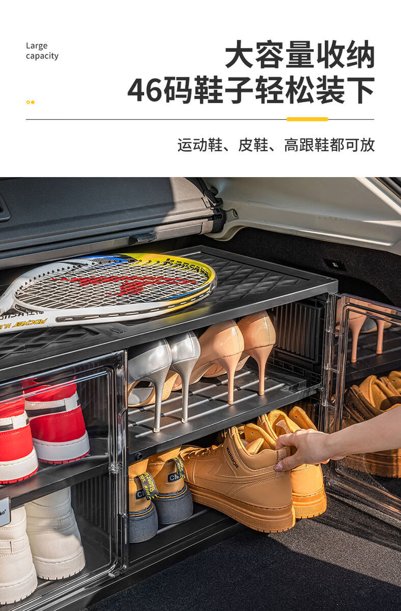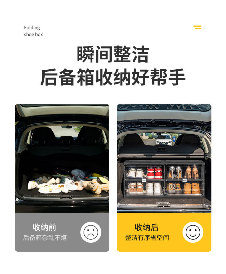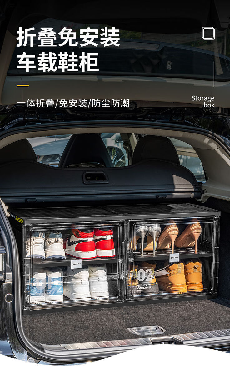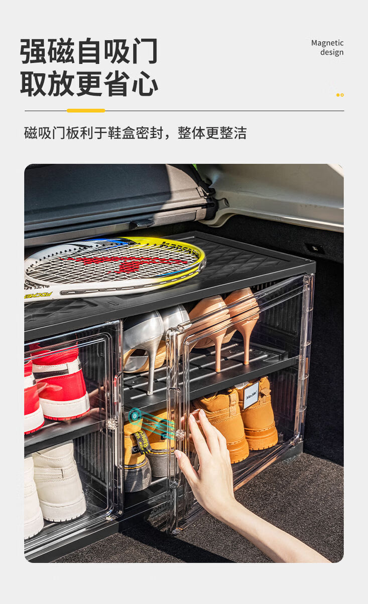 Fantasy car shoe box shoe storage box car transparent shoe cabinet car trunk shoe rack foldable black single row 2 layers 2 compartments can hold 4 pairs of shoes suitable for car use